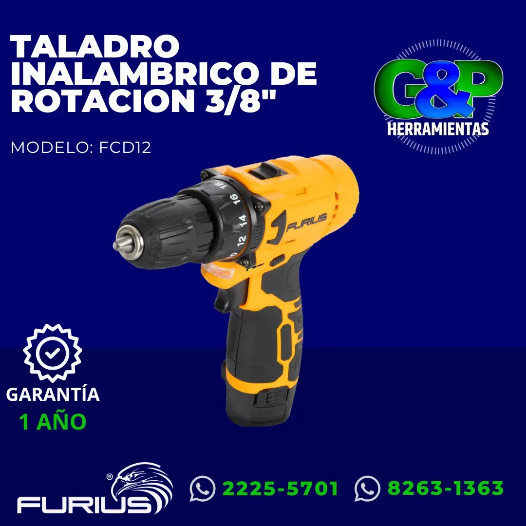 TALADRO DE ROTACION 3/8" INALAMBRICO FURIUS
