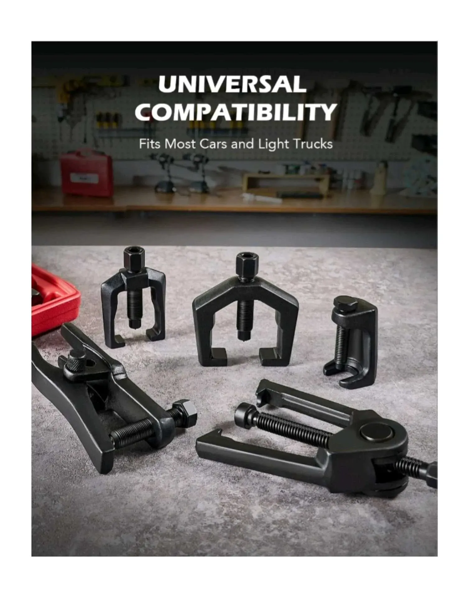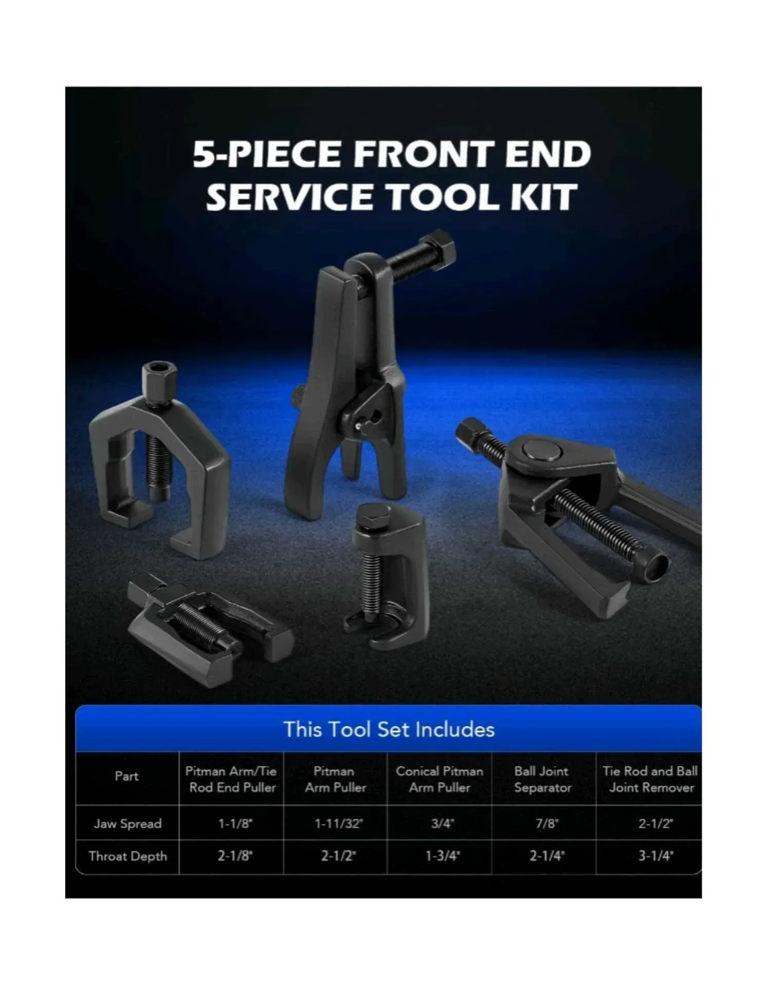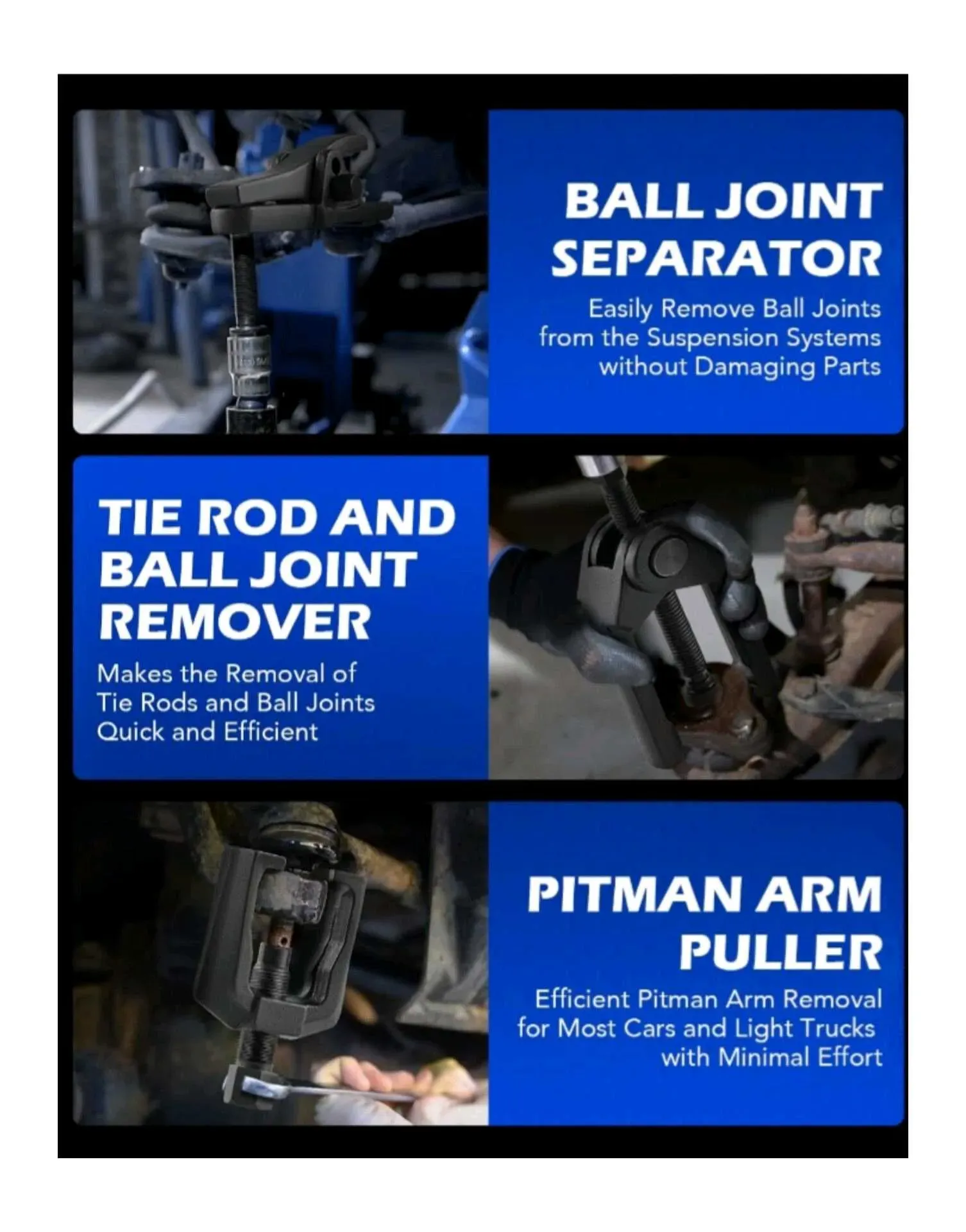 Viene con 1 separador de rótula, 1 barra de acoplamiento y removedor de rótulas, 1 extractor cónico de brazo Pitman, 1 extractor de extremo de brazo Pitman y barra de...