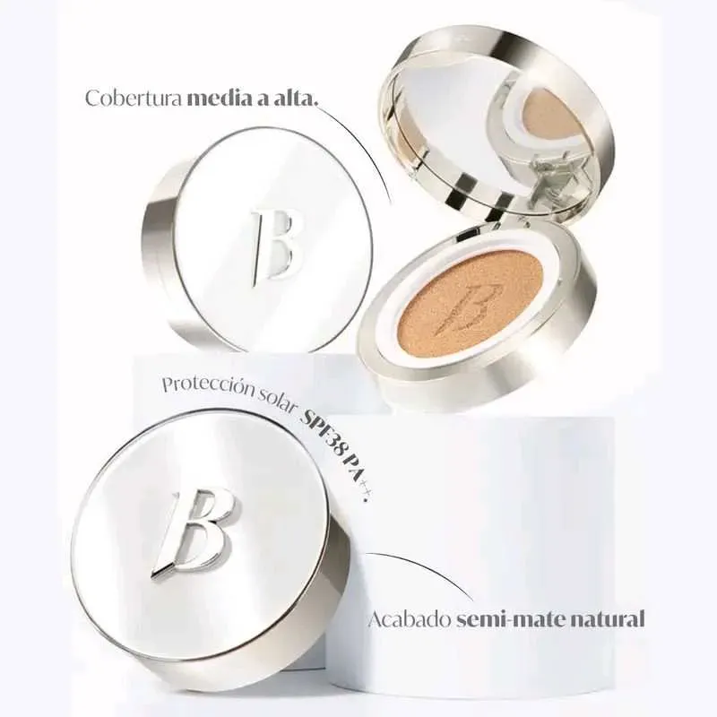 Este cojín con un espectro de SPF38, PA++ viene con 4 colores para ayudar a igualar el tono de la piel.