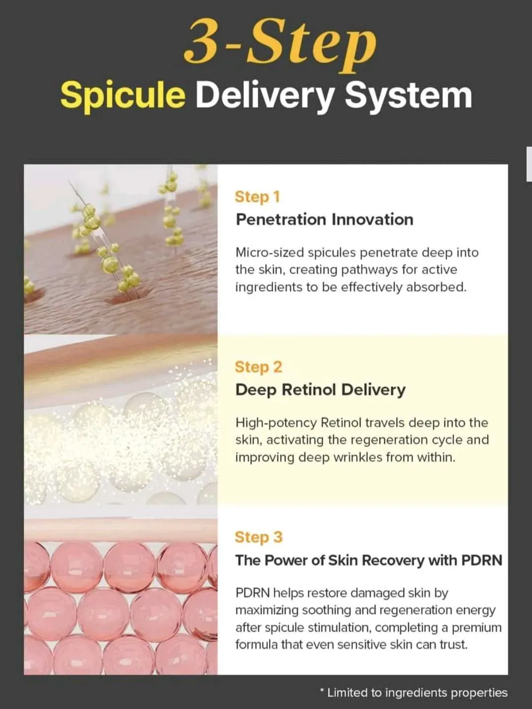 Esta crema contiene 2,000 ppm de espículas microscópicas naturales de origen marino, más pequeñas que los poros, que mejoran visiblemente la apariencia de las arrugas, los poros y la textura general de la piel.
