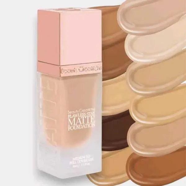 Base matte con una cobertura media a Alta y duración de 24hrs, contiene Niacinamida, libre de aceite, gluten, parabenos y sulfatos, a prueba de agua.