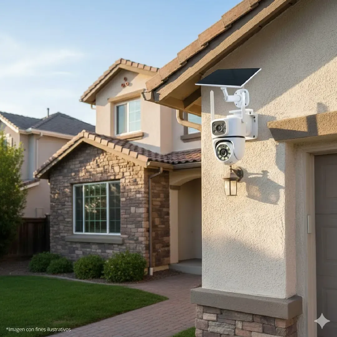 CÁMARA WIFI SOLAR Q02 DOMO DUAL DOS LENTES EXTERIOR 6MP TUYA SMART