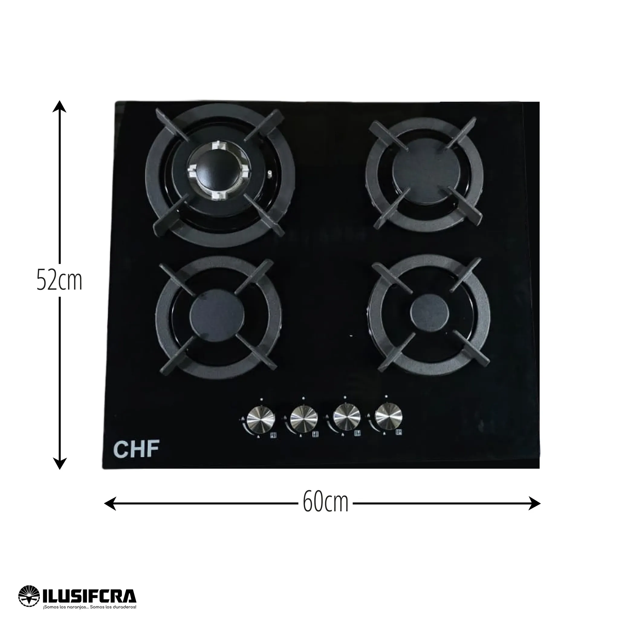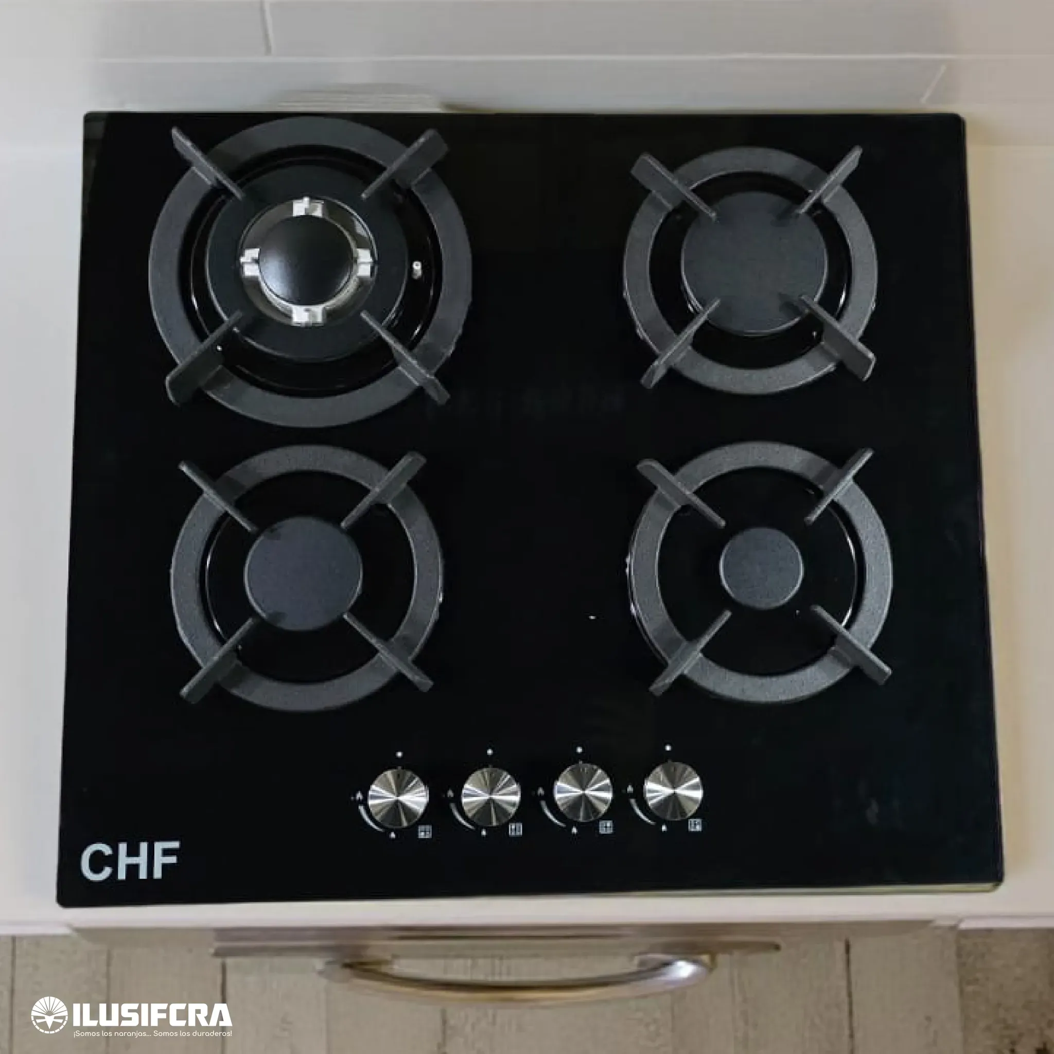 COCINA DE GAS 4 QUEMADORES VITROCERÁMICA CHF 0015