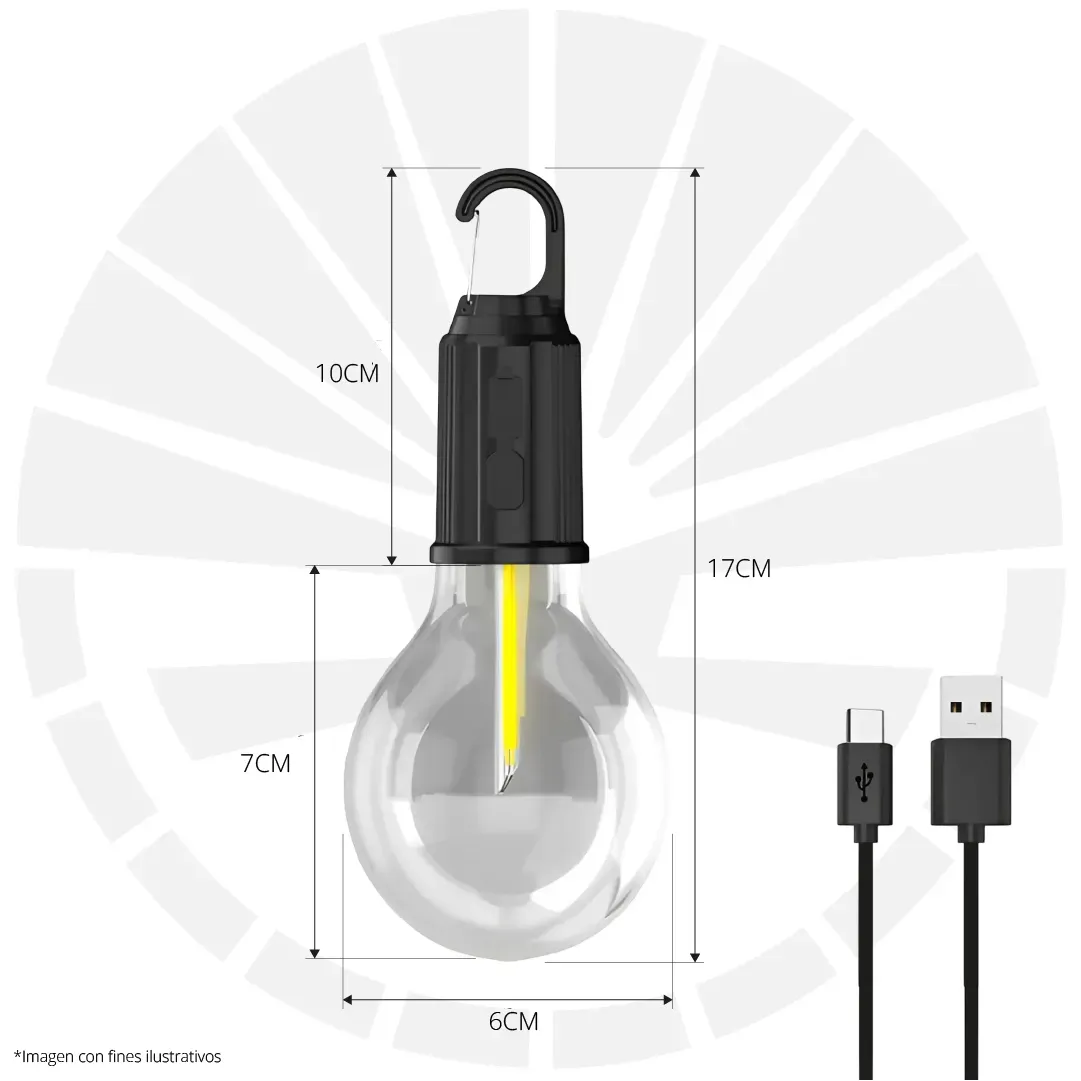 Luz de camping portátil y recargable con bombilla LED impermeable.