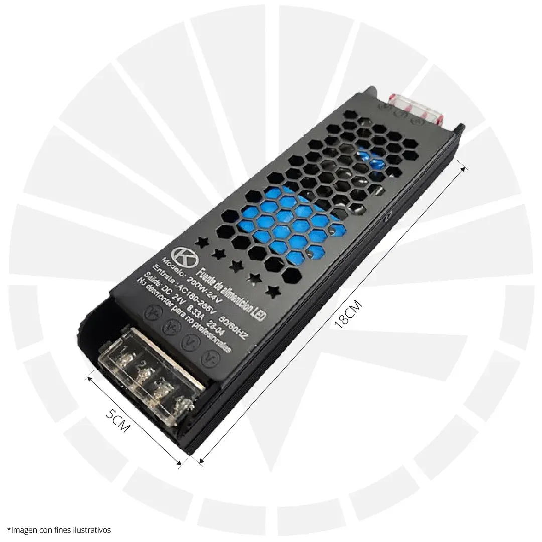 Compatible con equipos con potencia de hasta 200W y voltaje de salida de 24V.