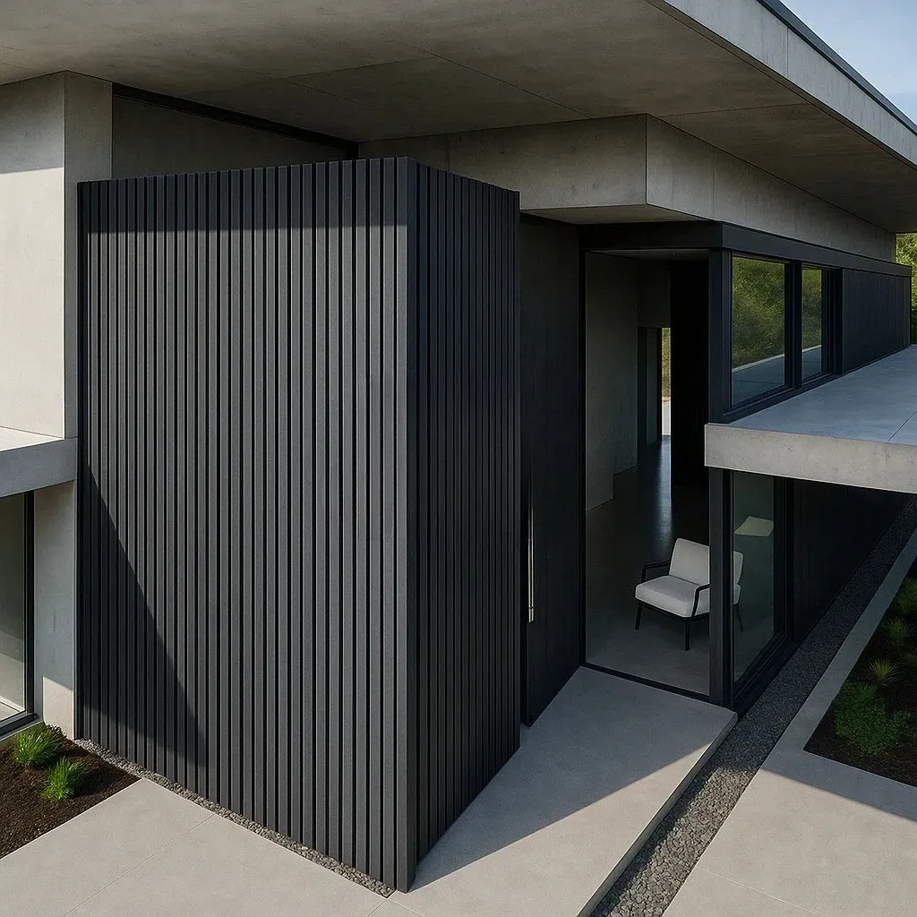 Nuestro lambrín para exterior en color gris está fabricado mediante tecnología de co-extrusión, que combina una capa protectora con un núcleo compuesto por 60% resina de madera y 40% polímero HDPE de alta densidad.
