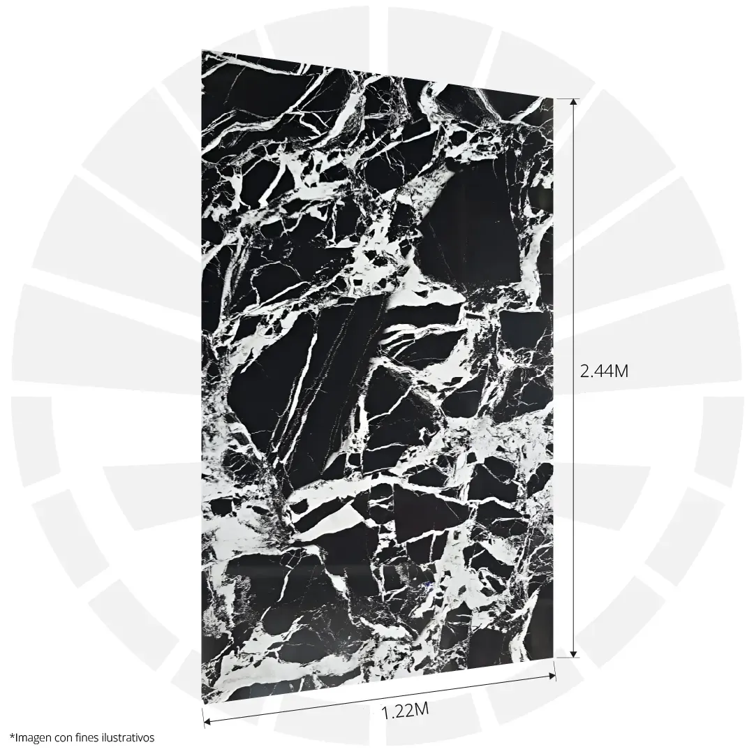 LAMINA PVC - PANEL UV ESTILO MARMOL NEGRO ESCALA VETA 1.22M X 2.44M / 3MM KL8008