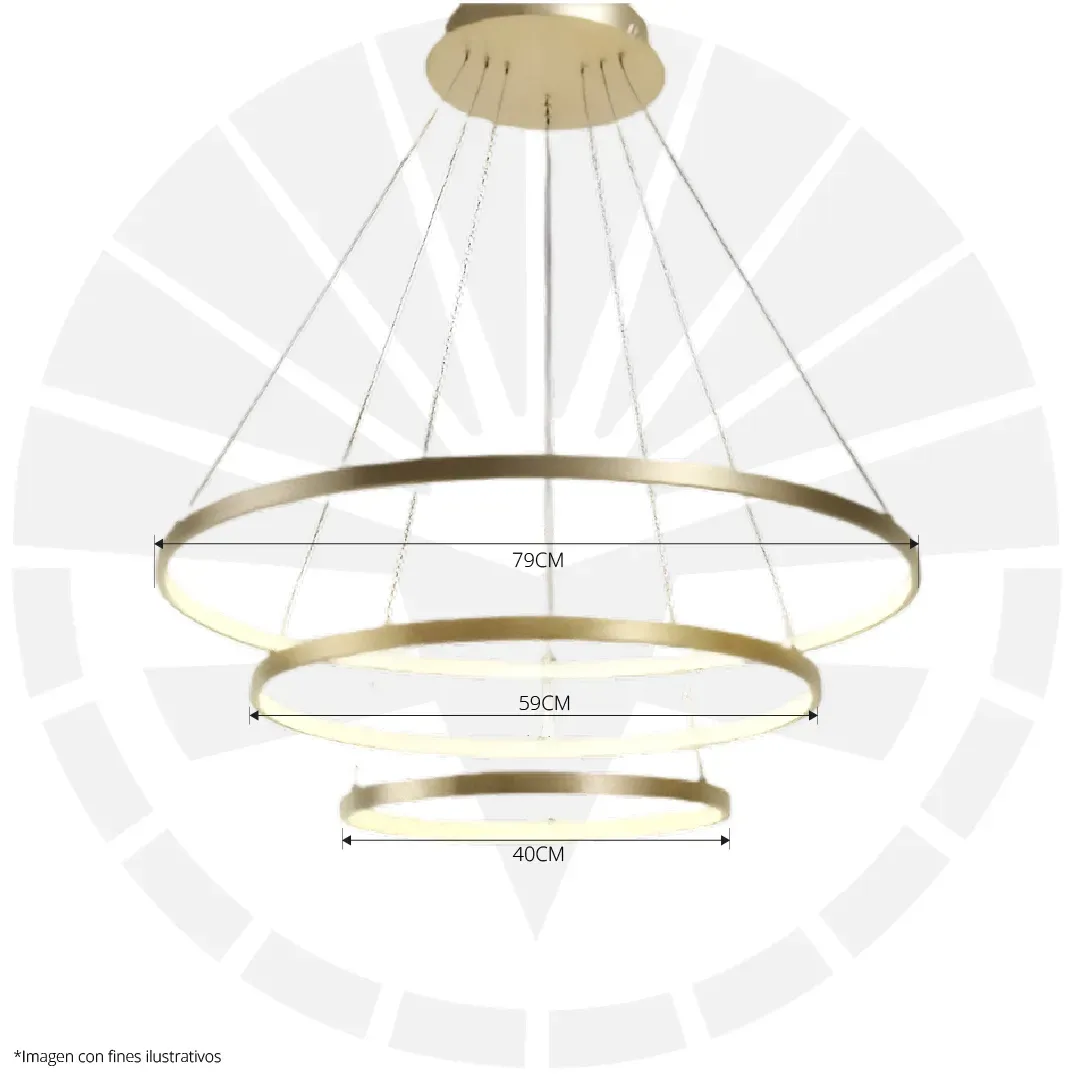LAMPARA COLGAR 8005-3 / 8003-3 40+60+80 3 AROS DORADOS