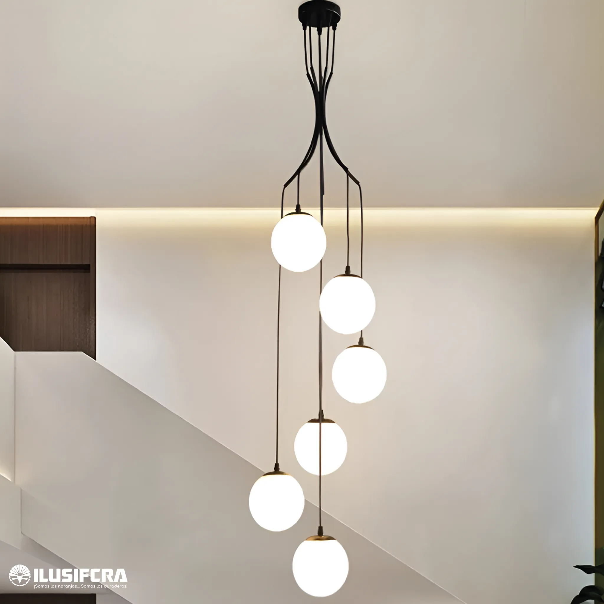 La lámpara de colgar de eltura 6 Esferas 8006-6 combina diseño moderno con un estilo elegante que realza cualquier espacio. Sus seis esferas colgan