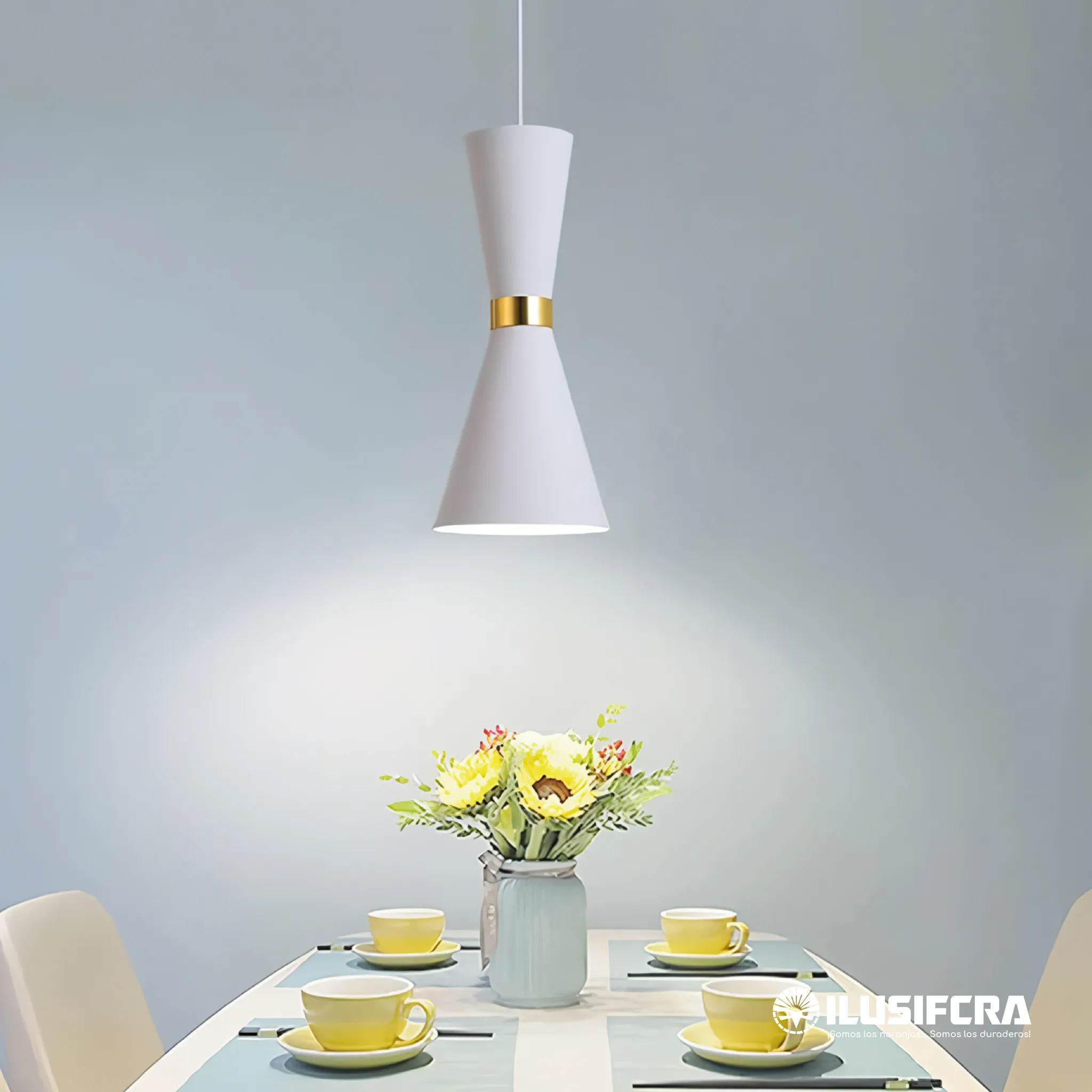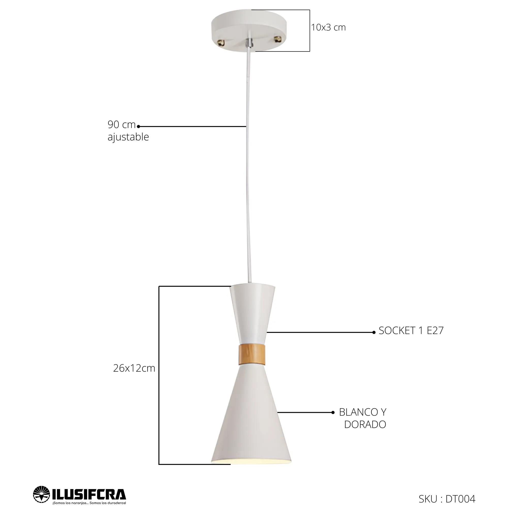 LÁMPARA DE COLGAR CONO PEQUEÑO BLANCO CON DETALLE DORADO DT-004