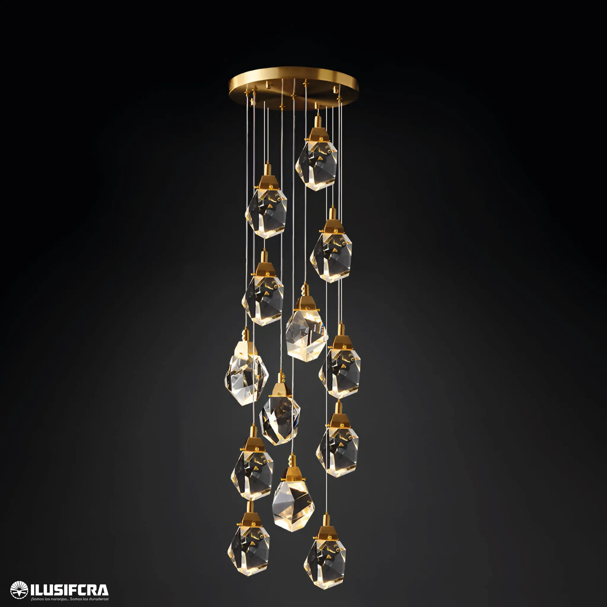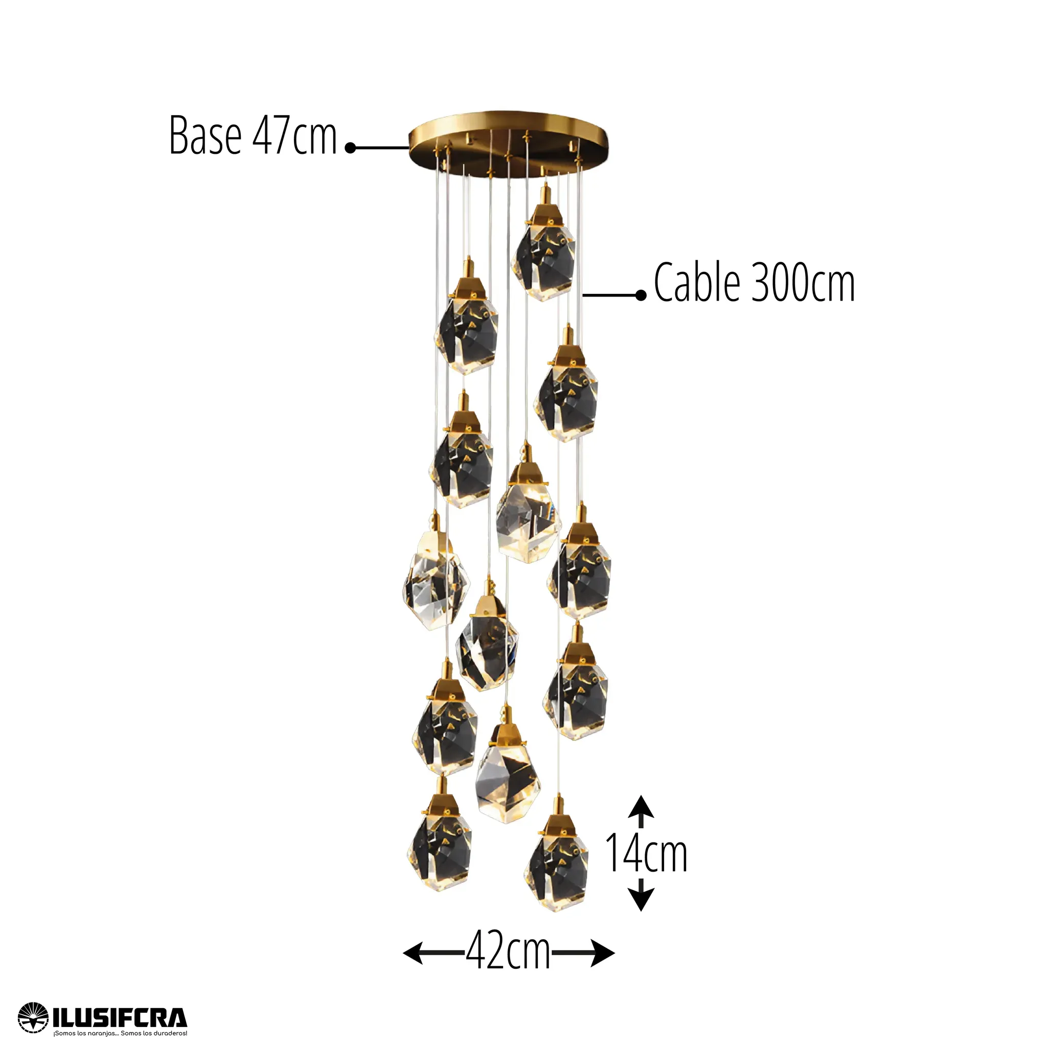 LÁMPARA DE COLGAR DOBLE ALTURA 15 ESFERAS DE VIDRIO 9901-15