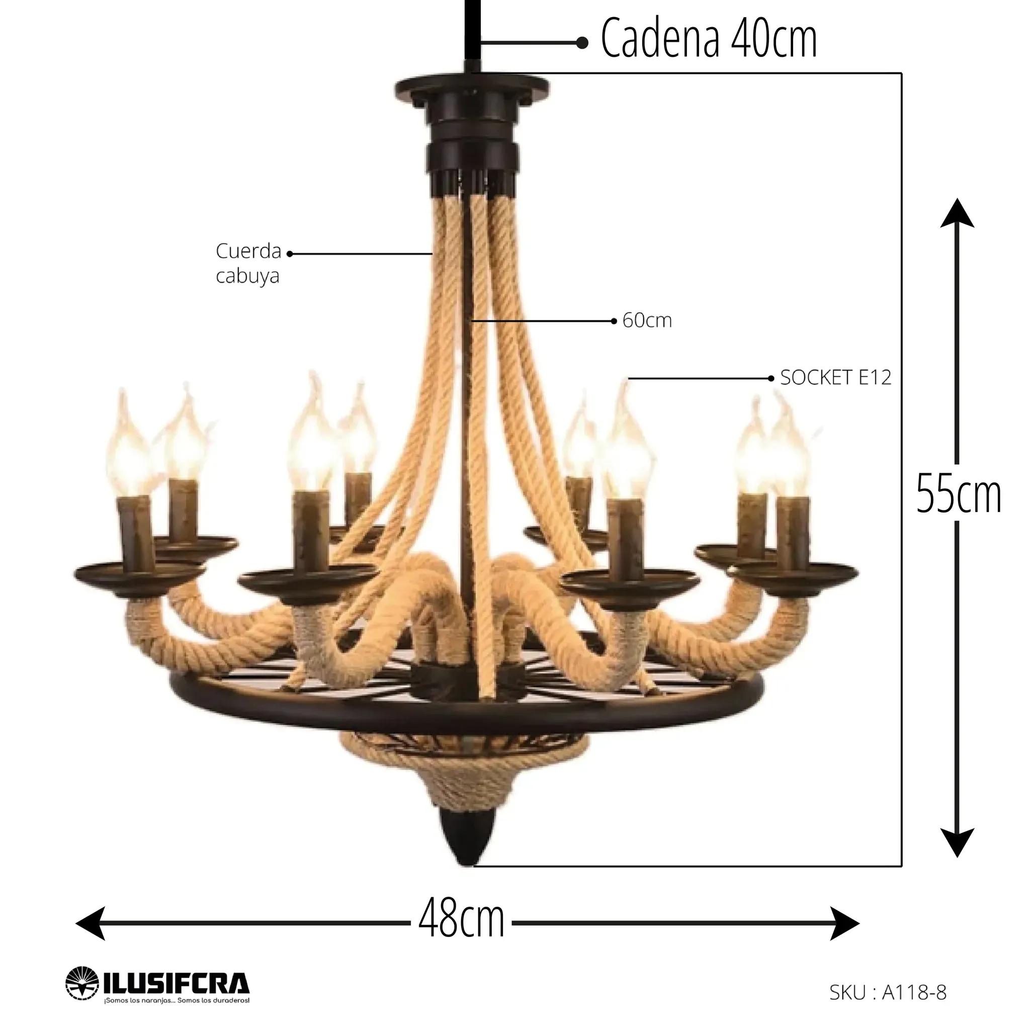 Material metal negro con detalles en mecate cabuya.