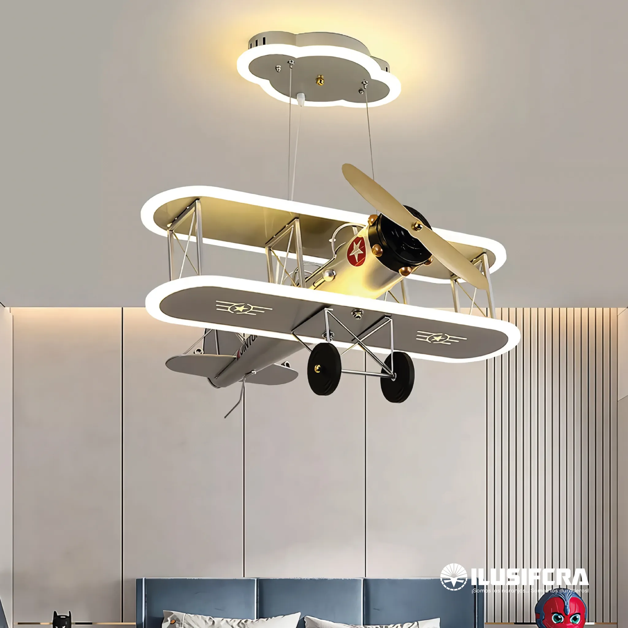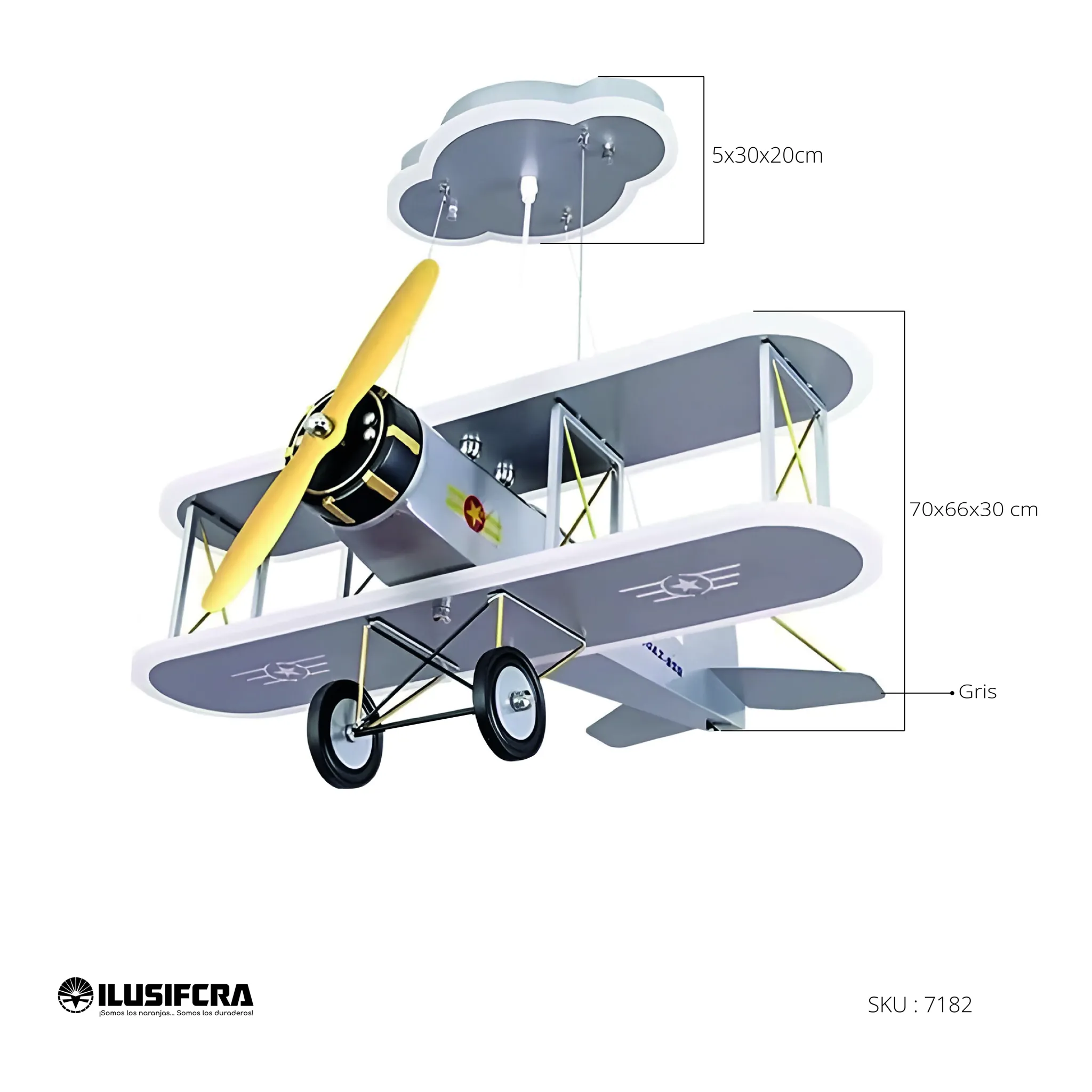 LÁMPARA DE COLGAR PARA NIÑOS AVIÓN GRIS 7182 - 573