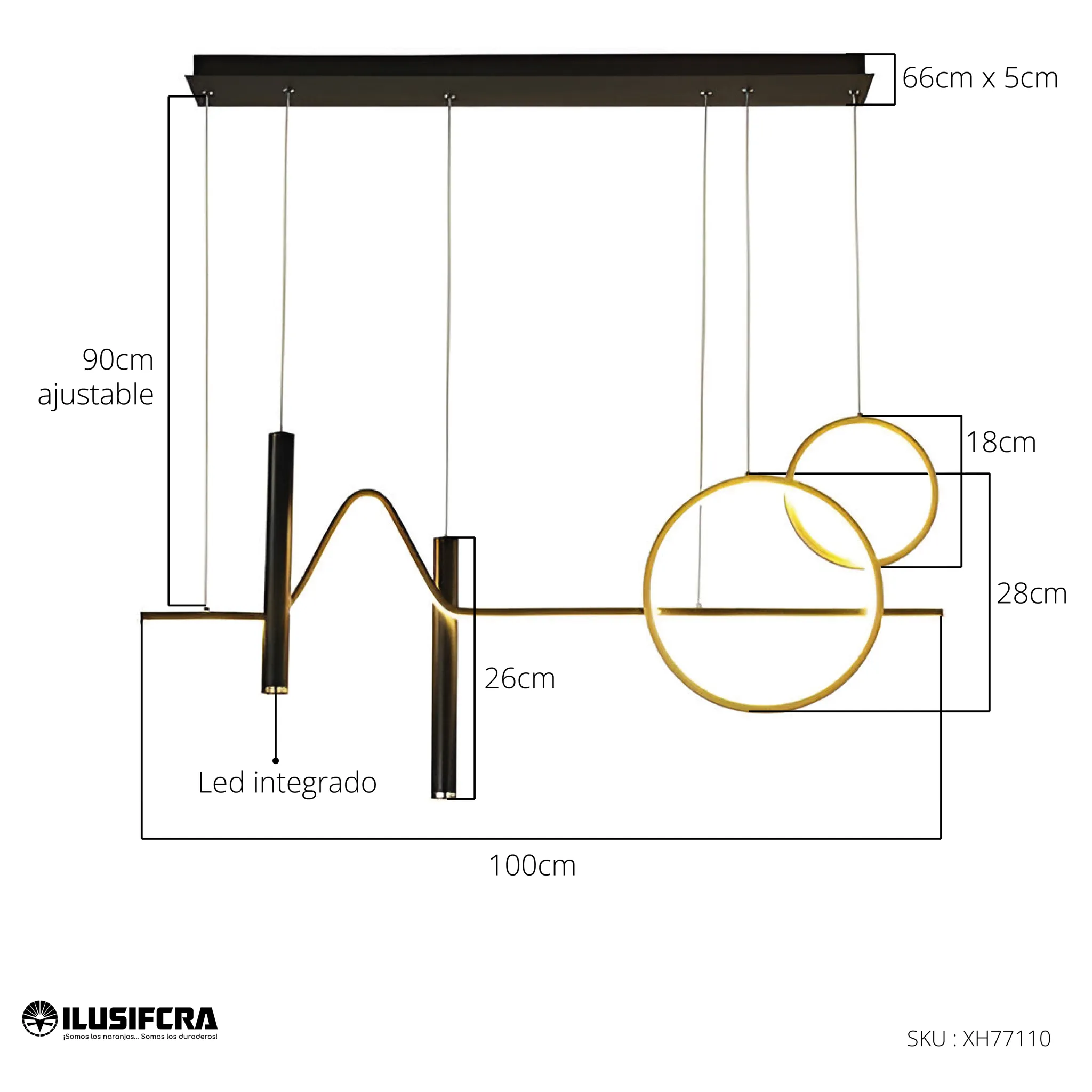 LÁMPARA COLGAR XH77110 C/APLIQUES Y BARRA