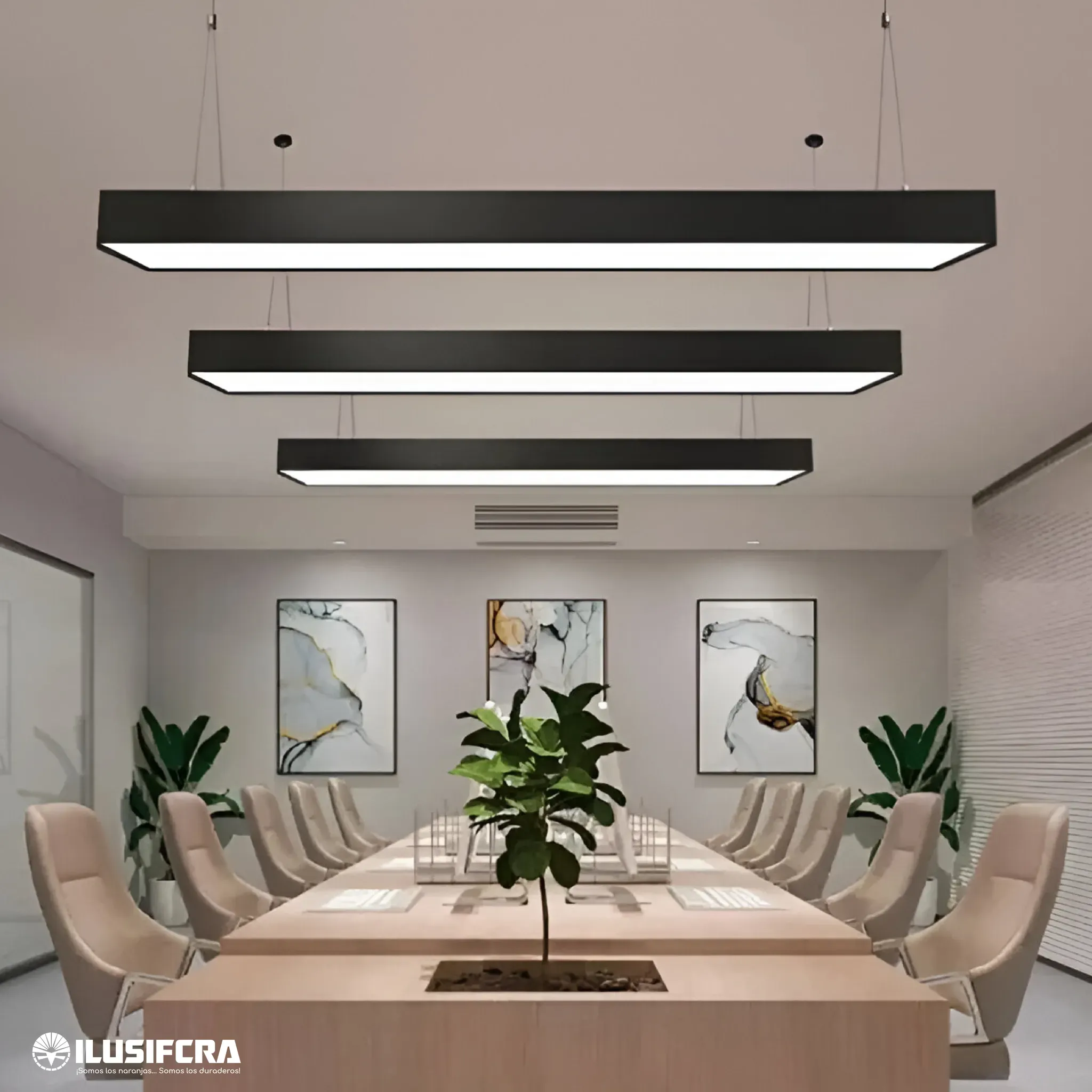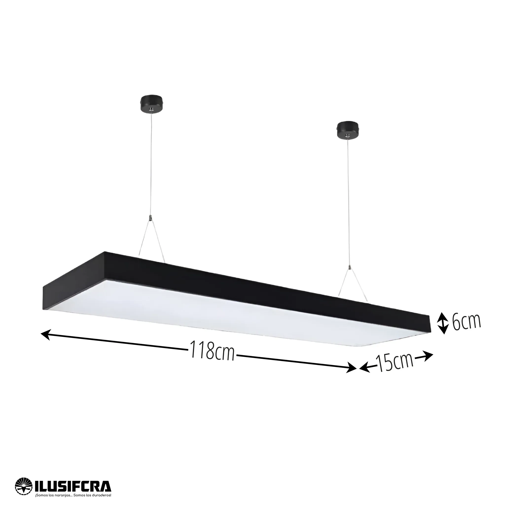 LAMPARA DE TECHO LED LINEAL RECTANGULAR BORDE NEGRO 45W 1200X150X60