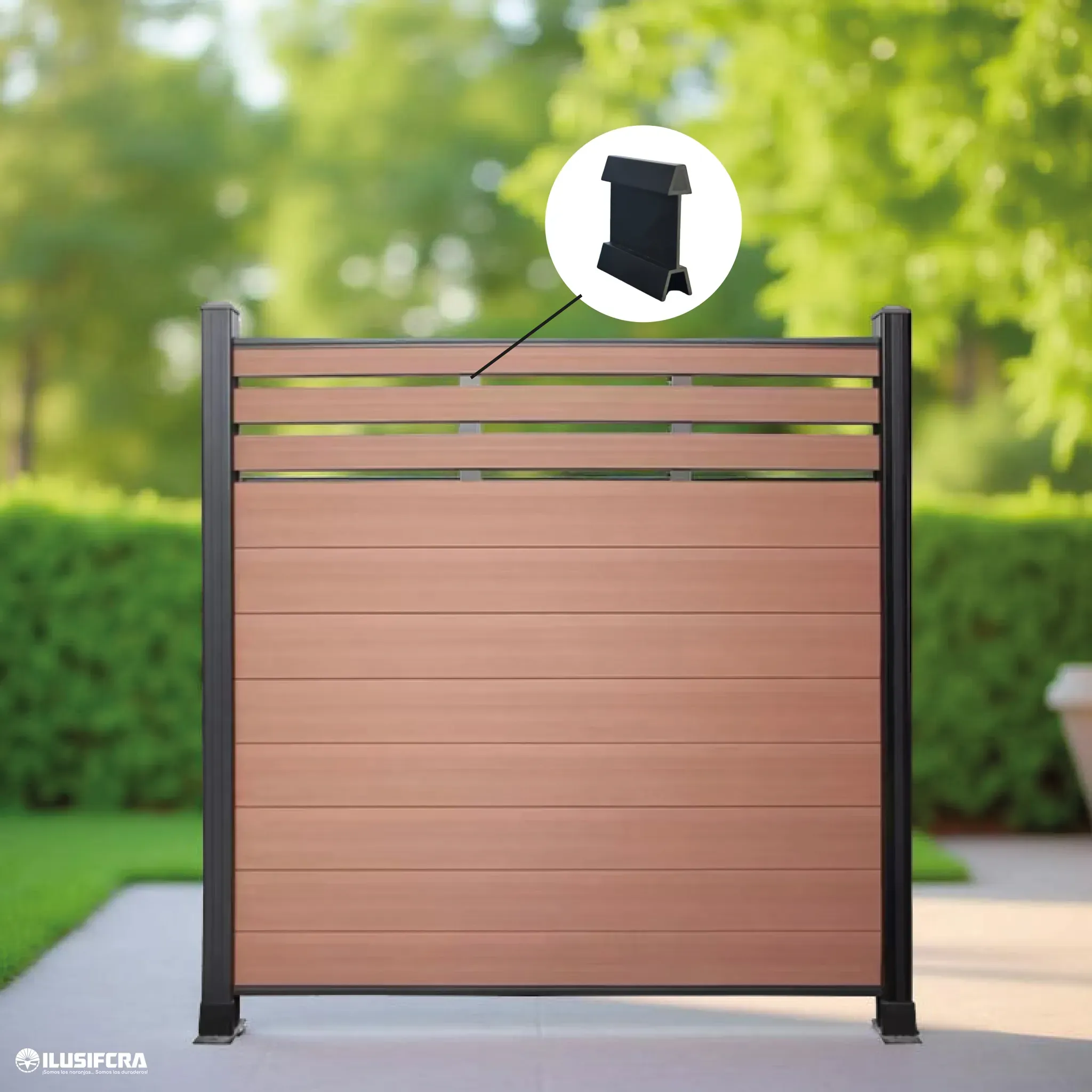 Estructural: ayuda a dividir y sostener los paneles o láminas de la cerca, manteniéndolos en su lugar de forma firme y alineada.