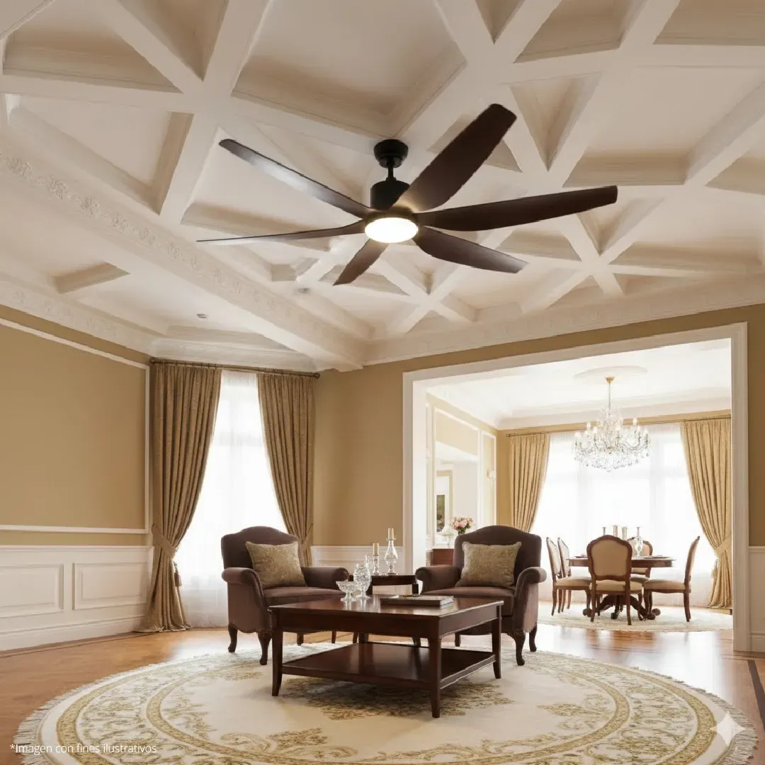 VENTILADOR DE TECHO MODERNO CON LUZ LED ACABADO MADERA FS4012-6