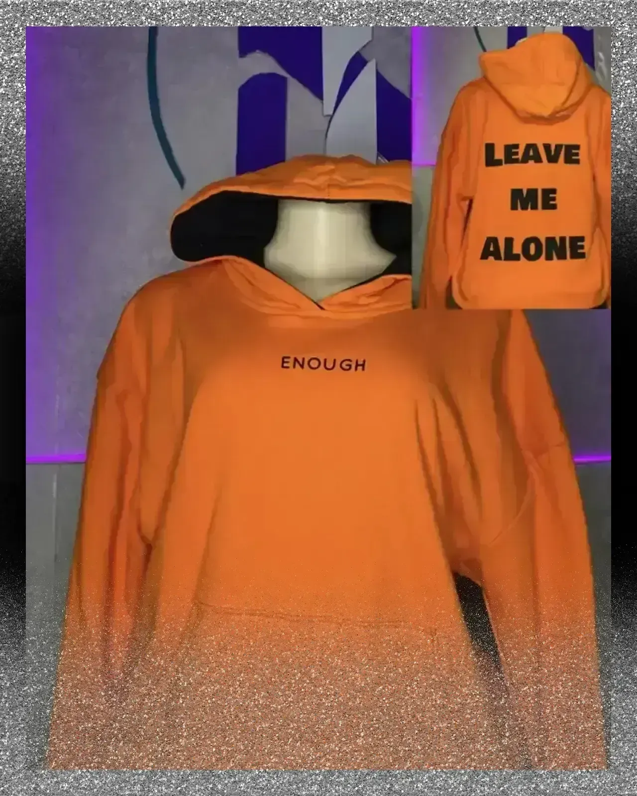 arte “enough “ en péqueño al frente y frase en grande en la parte trasera