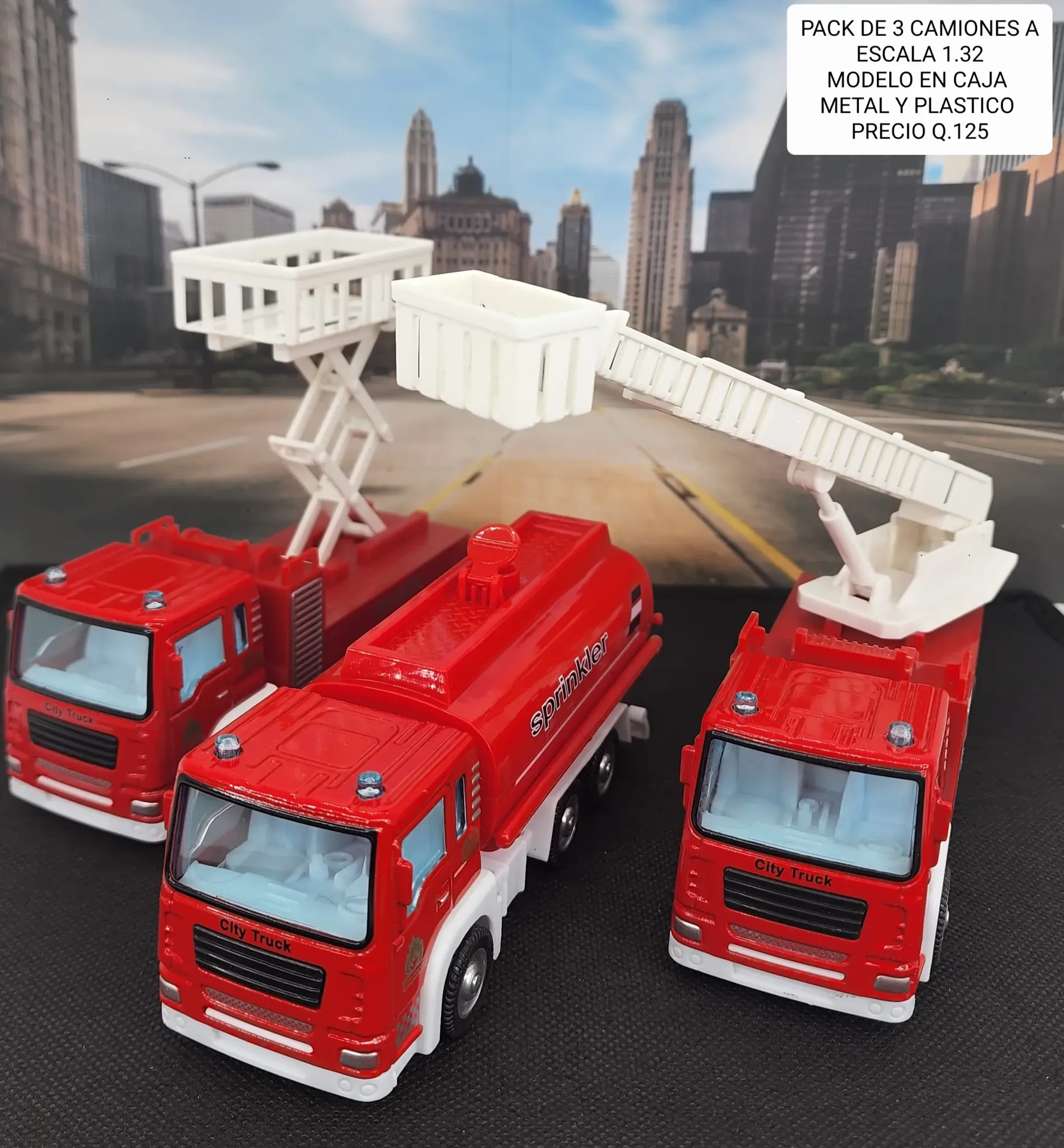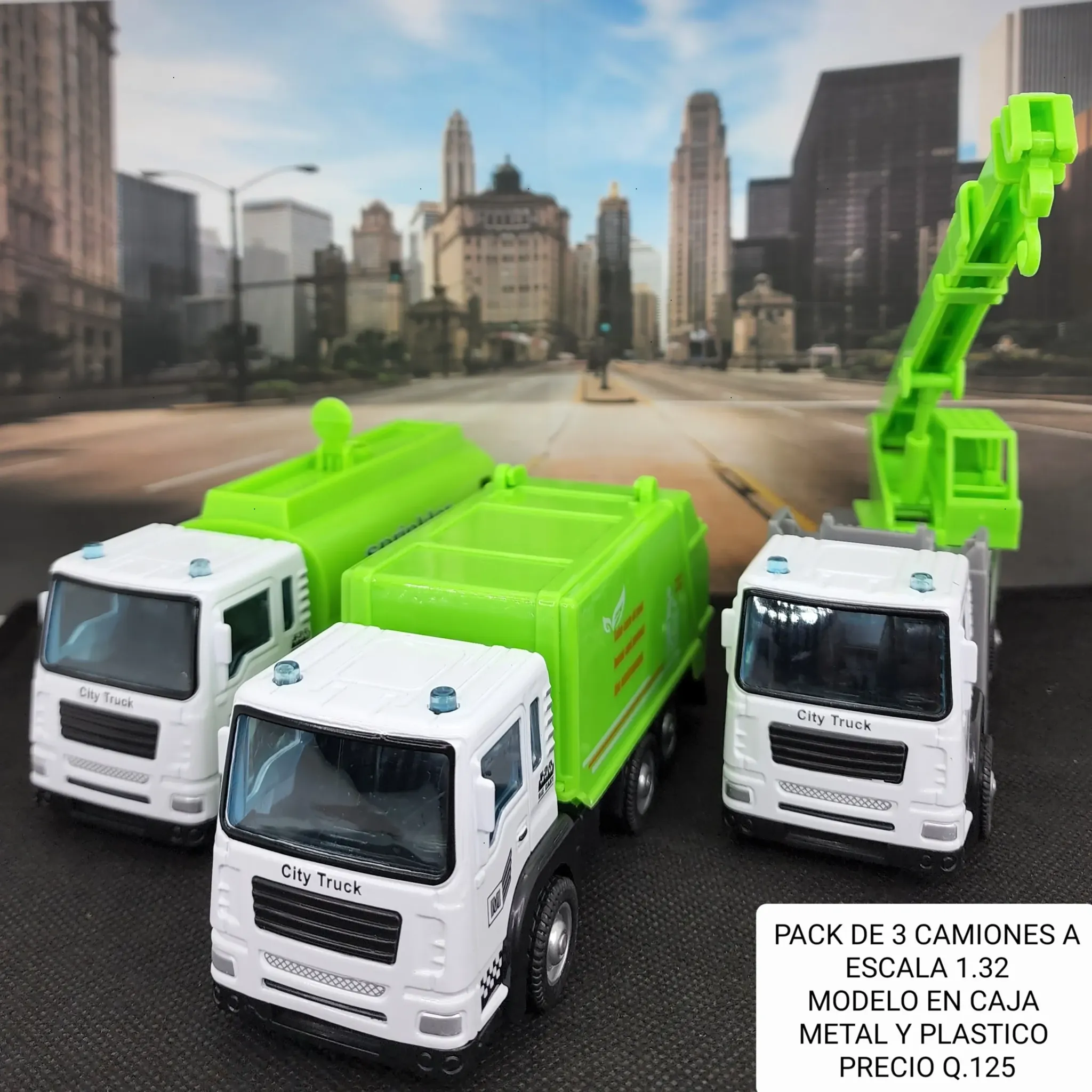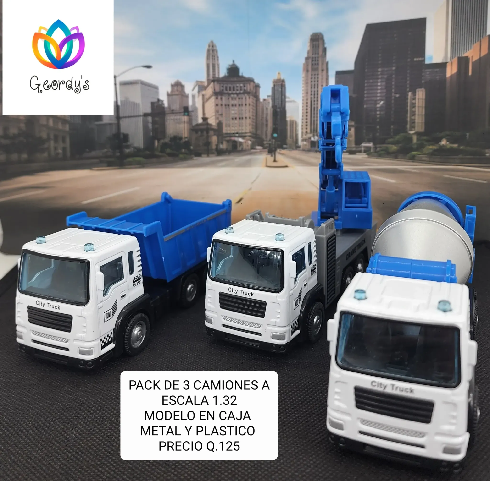 ¡Lleva la diversión a otro nivel con este increíble kit de 3 camiones a escala! Perfecto para coleccionar o regalar a los amantes de los vehículo...