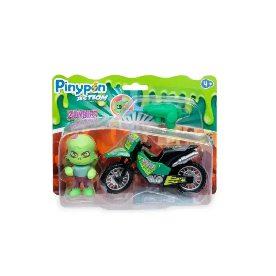 ¡Diviértete con este increíble juguete de acción Pinypon de un zombie montado en una motocicleta verde! Ideal para estimular la imaginación y creatividad de los niños. ¡Colecciónalos todos y vive emocionantes aventuras en el mundo de Pinypon!