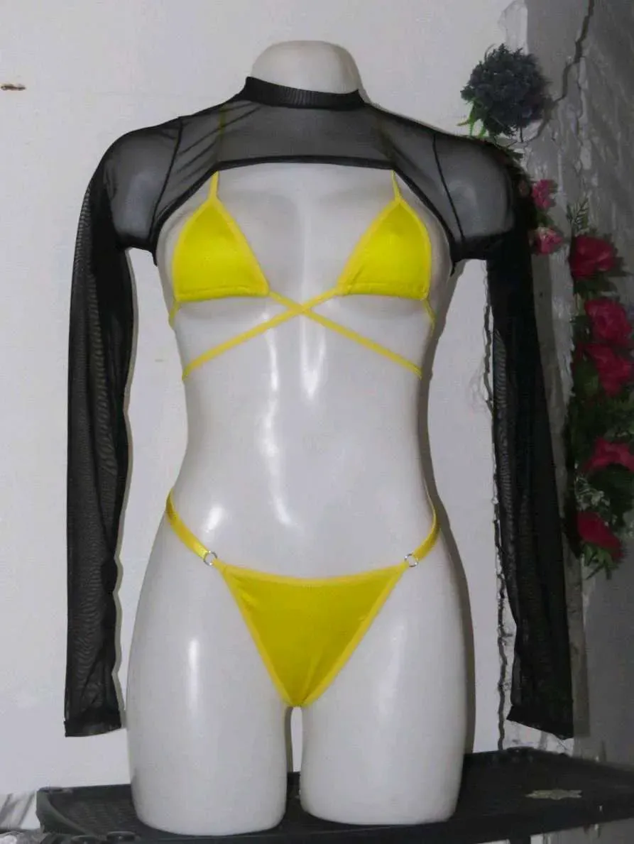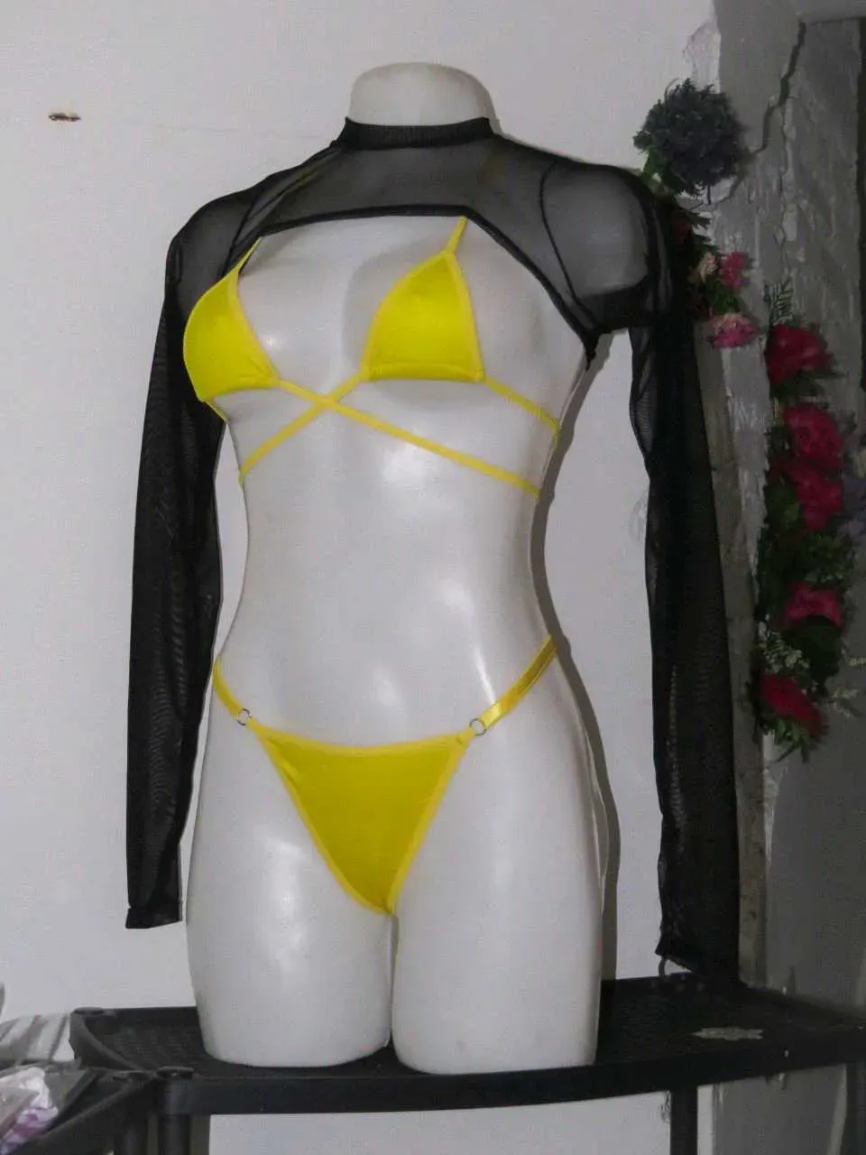 Este bikini de tela piel de durazno es suave y fresco, ideal para lucir a la moda y sentirte cómoda. Con forro de algodón para mayor comodidad y un micro bralette con tiras ajustables. Incluye minisueter ¡Dale un toque único a tu estilo con este elegante diseño!