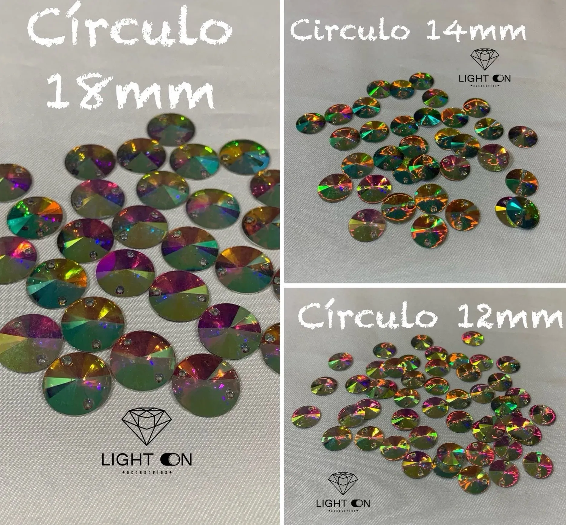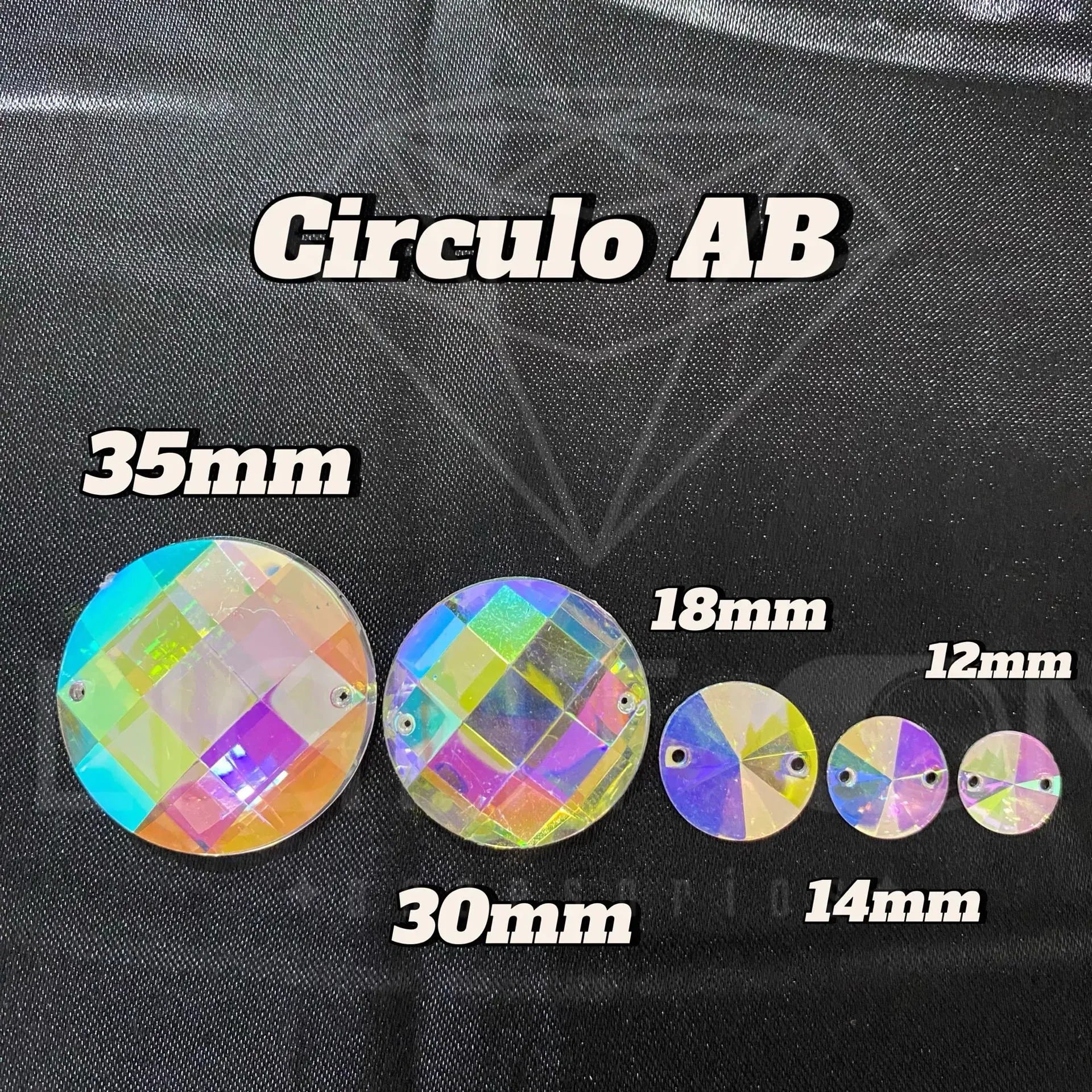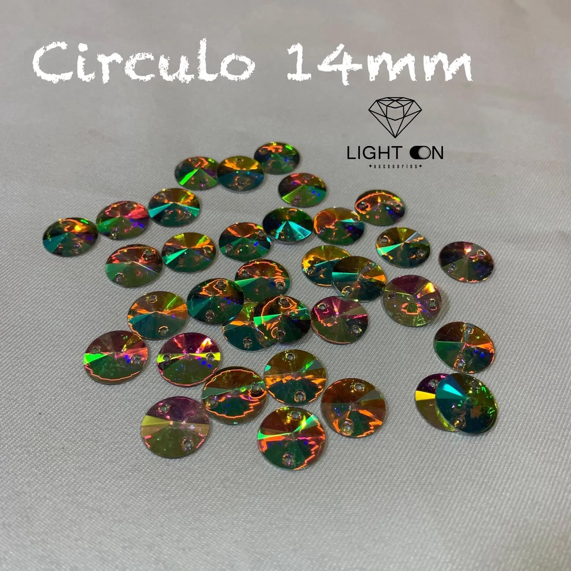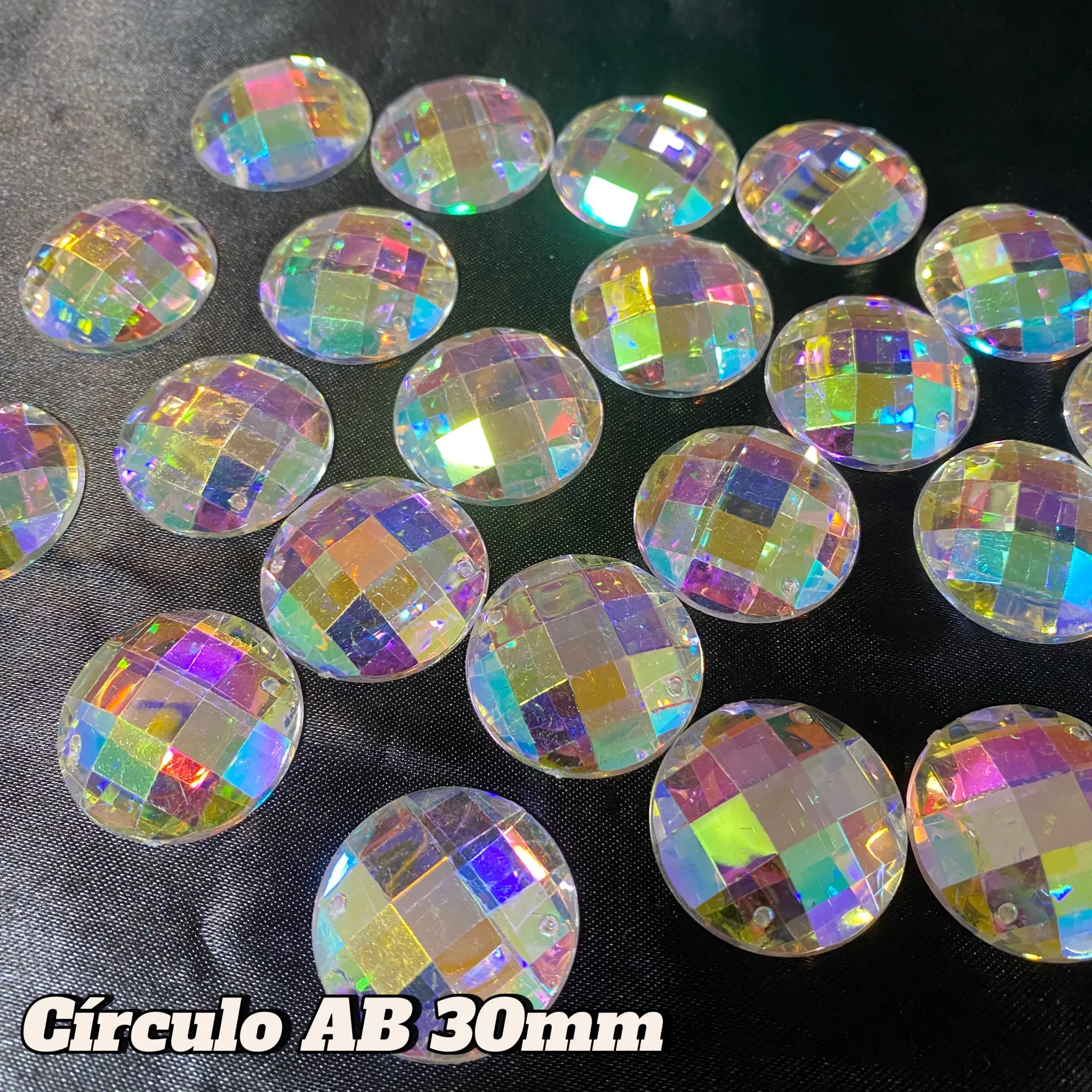 Pedreria Plastica Bella stone Circulo tornasol en todos los tamaños (12mm. 14mm, 18mm, 30mm, 35mm) por docena (12 unidades)