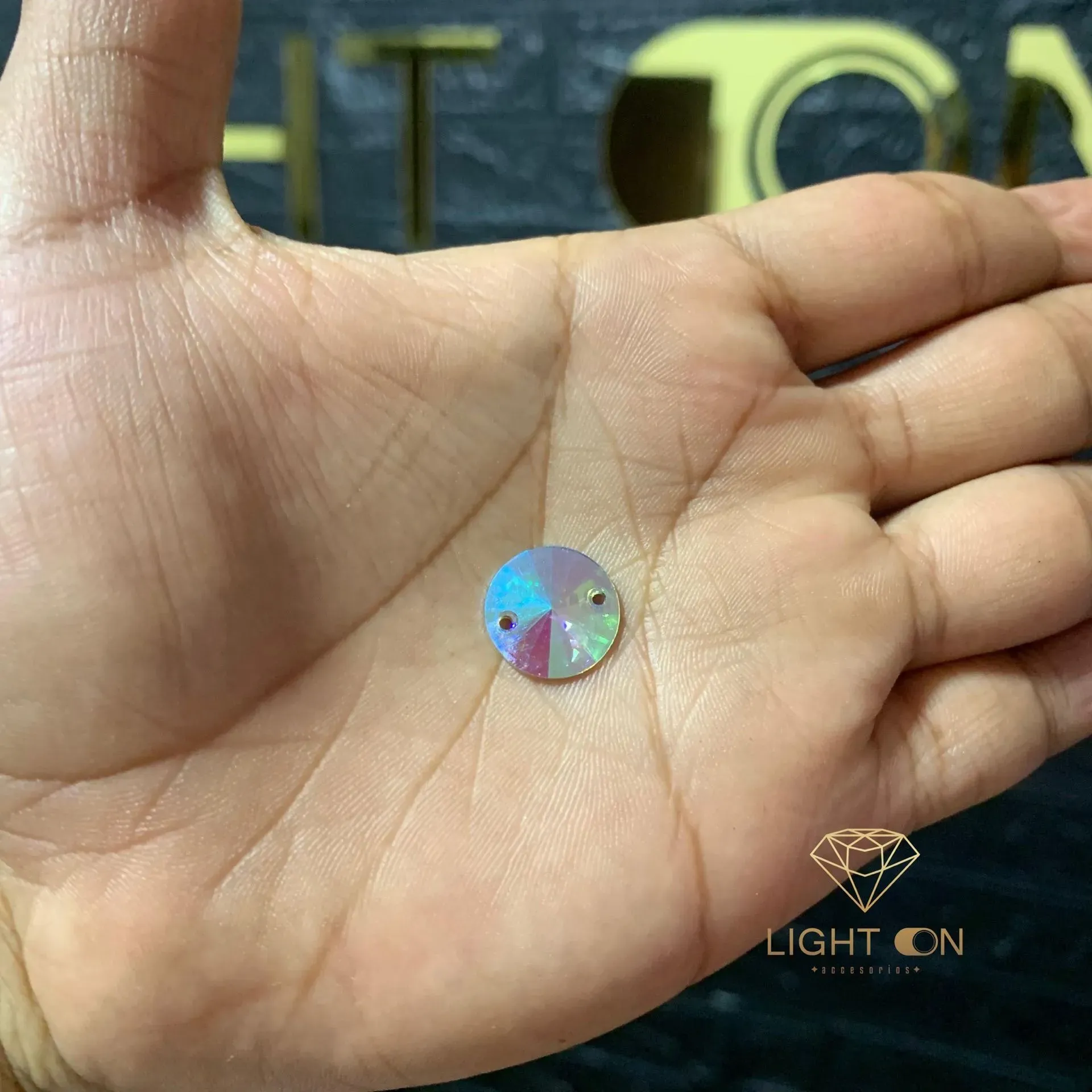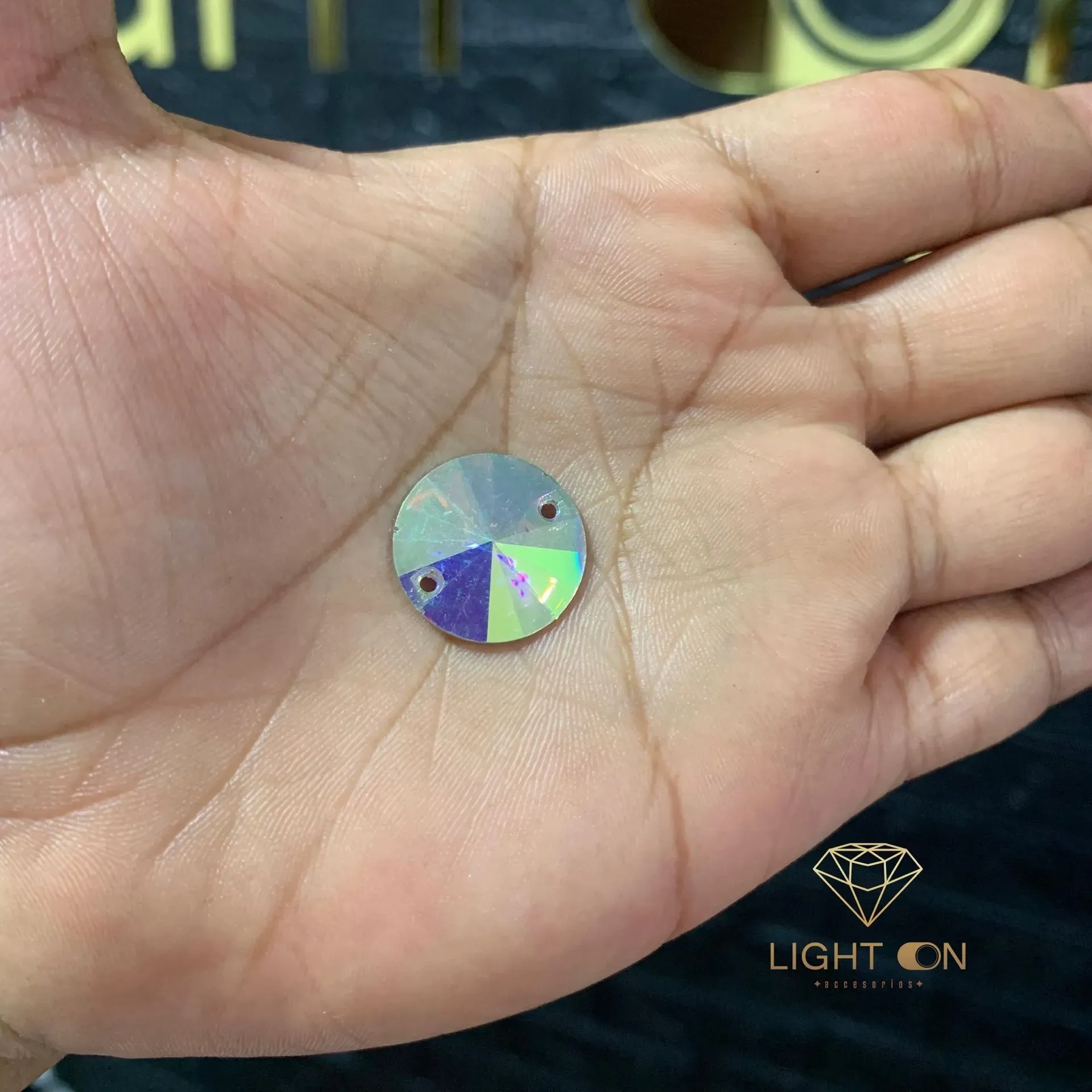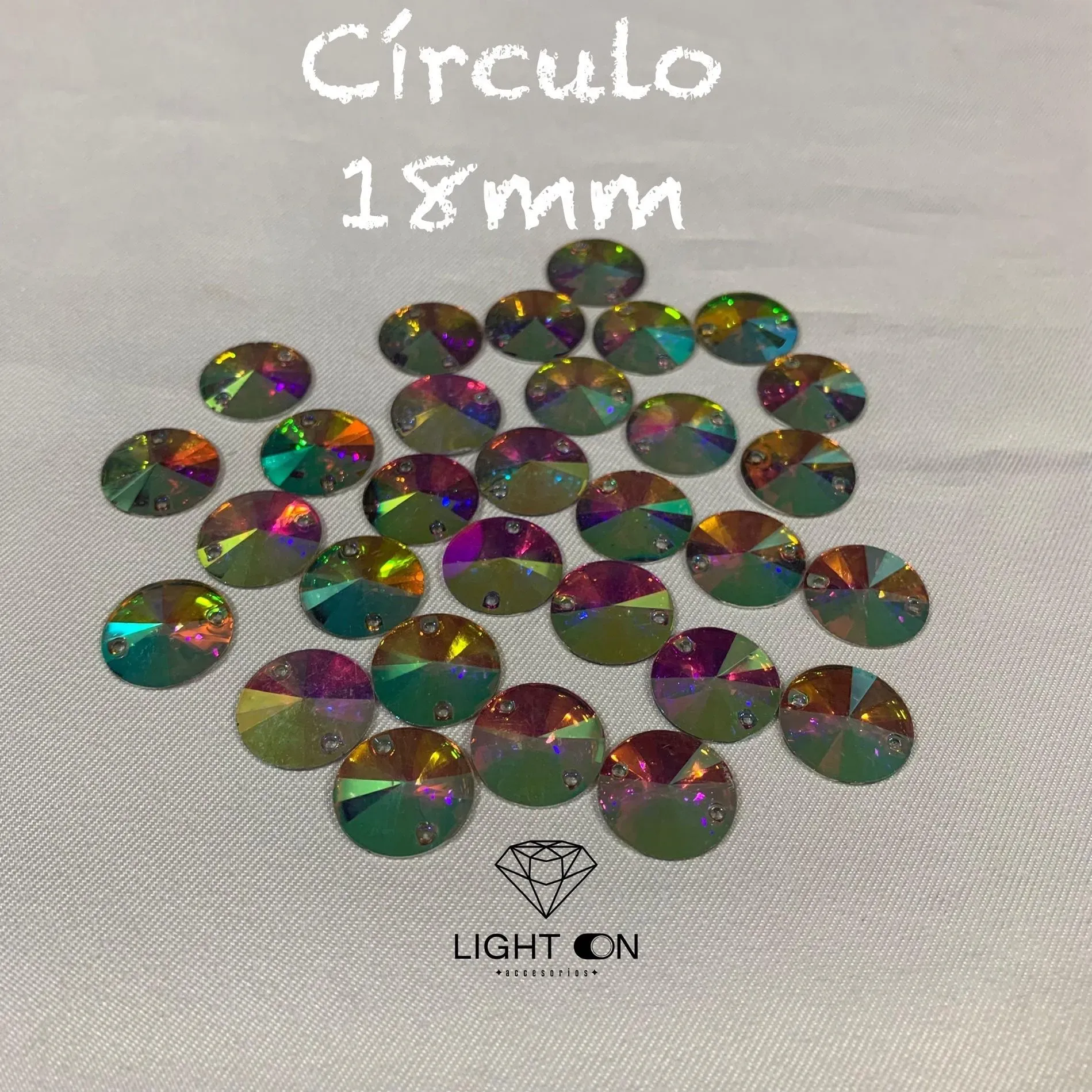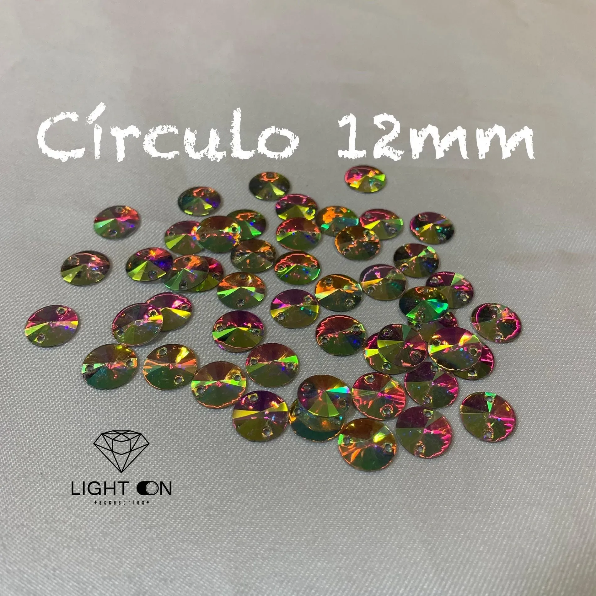 Pedreria Plastica Bella stone Circulo tornasol en todos los tamaños (12mm. 14mm, 18mm, 30mm, 35mm) por docena (12 unidades)