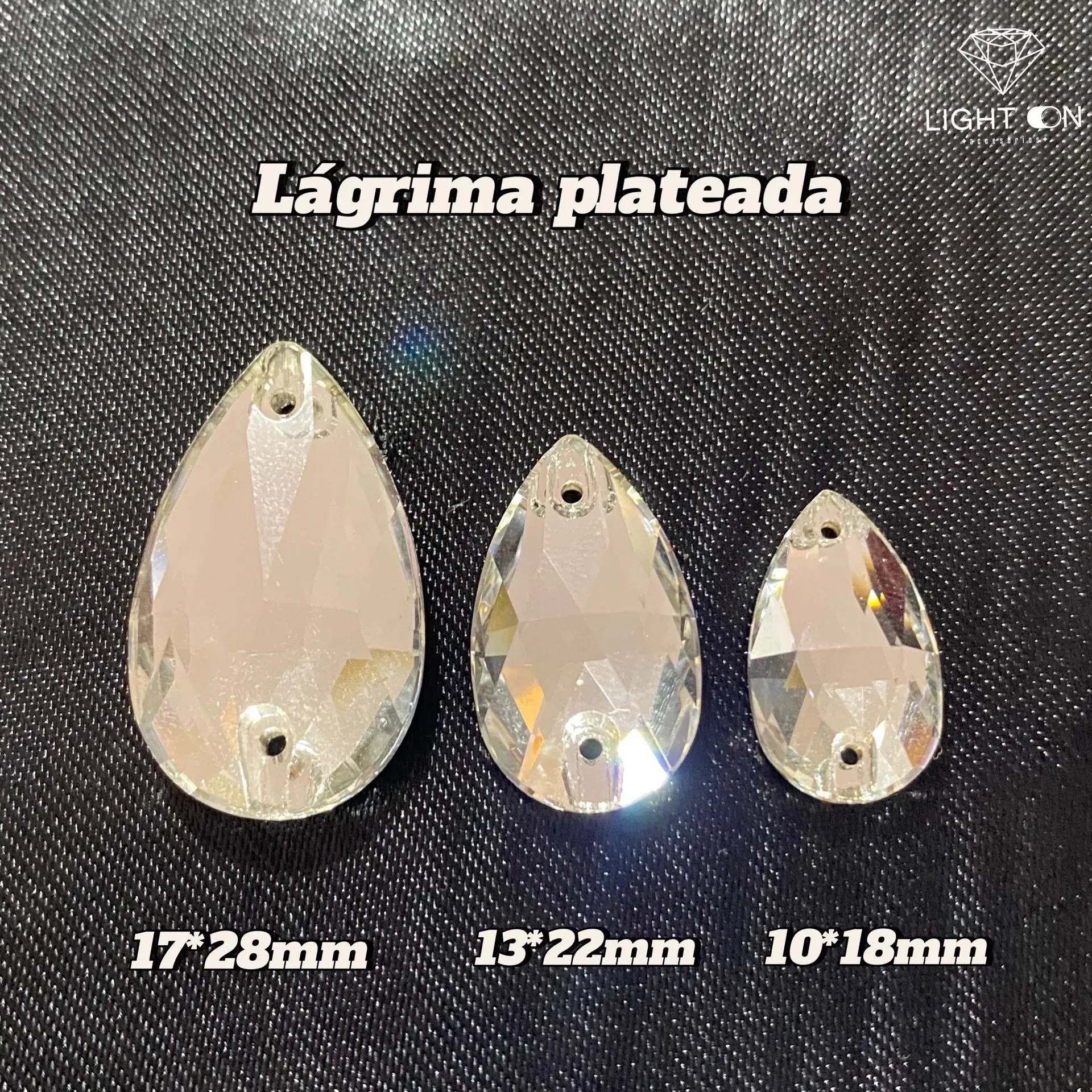 Pedreria Vidrio Bella Stone Lagrima plateada todos los tamaños (11*18mm, 13*22mm, 17*28mm) por unidad