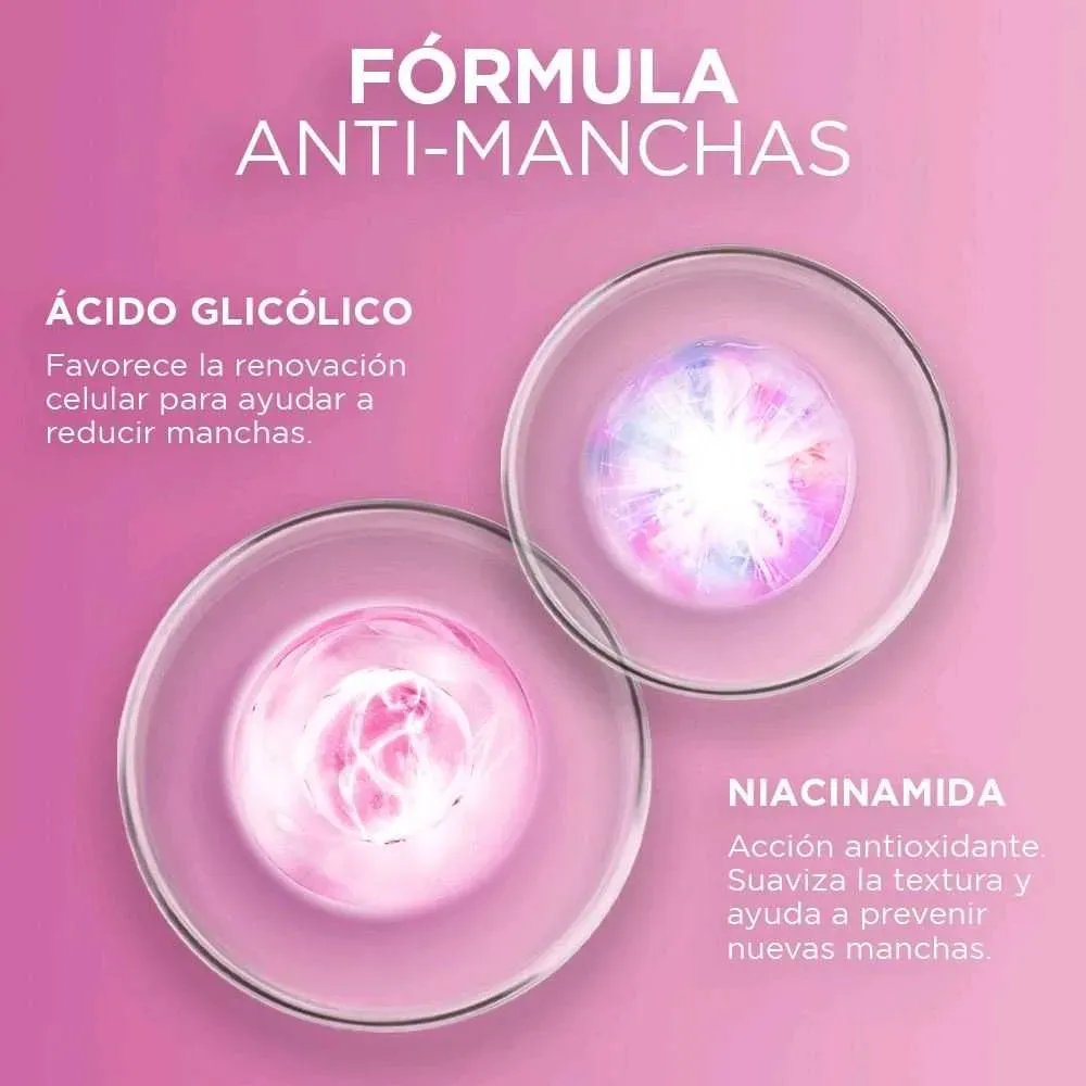 Gel-Crema Anti-Manchas. Nuestra fórmula más potente con [Ácido Glicólico + Niacinamida] Ingredientes que ayudan a reducir manchas y unificar el tono de la piel.