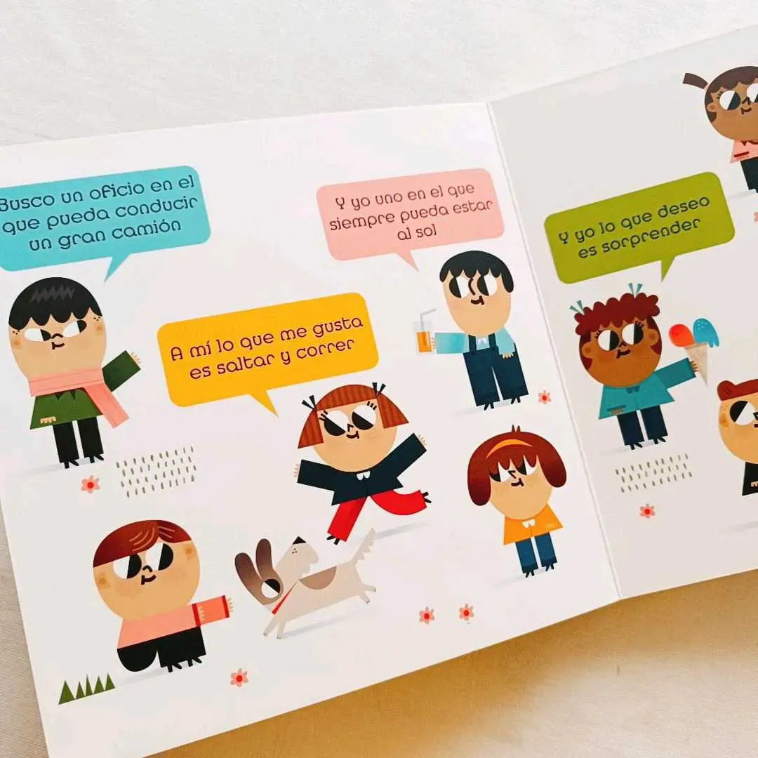 ¿Qué te gustaría ser de mayor? Conoce distintos oficios y profesiones a partir de un divertido juego de adivinanzas. Observa las imágenes, levanta las solapas y adivina qué quiere ser de mayor cada uno de los niños y niñas.