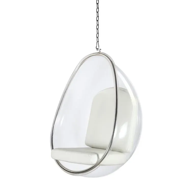 Inspirada en la Silla Bubble de Eero Aarnio, ¡ uno de los muebles más sorprendentes de los últimos años! La futurista y perfecta silla burbuja con forma de huevo hará que la relajación sea aún más ligera. Cuando se suspende del techo, esta silla desafía las leyes ...