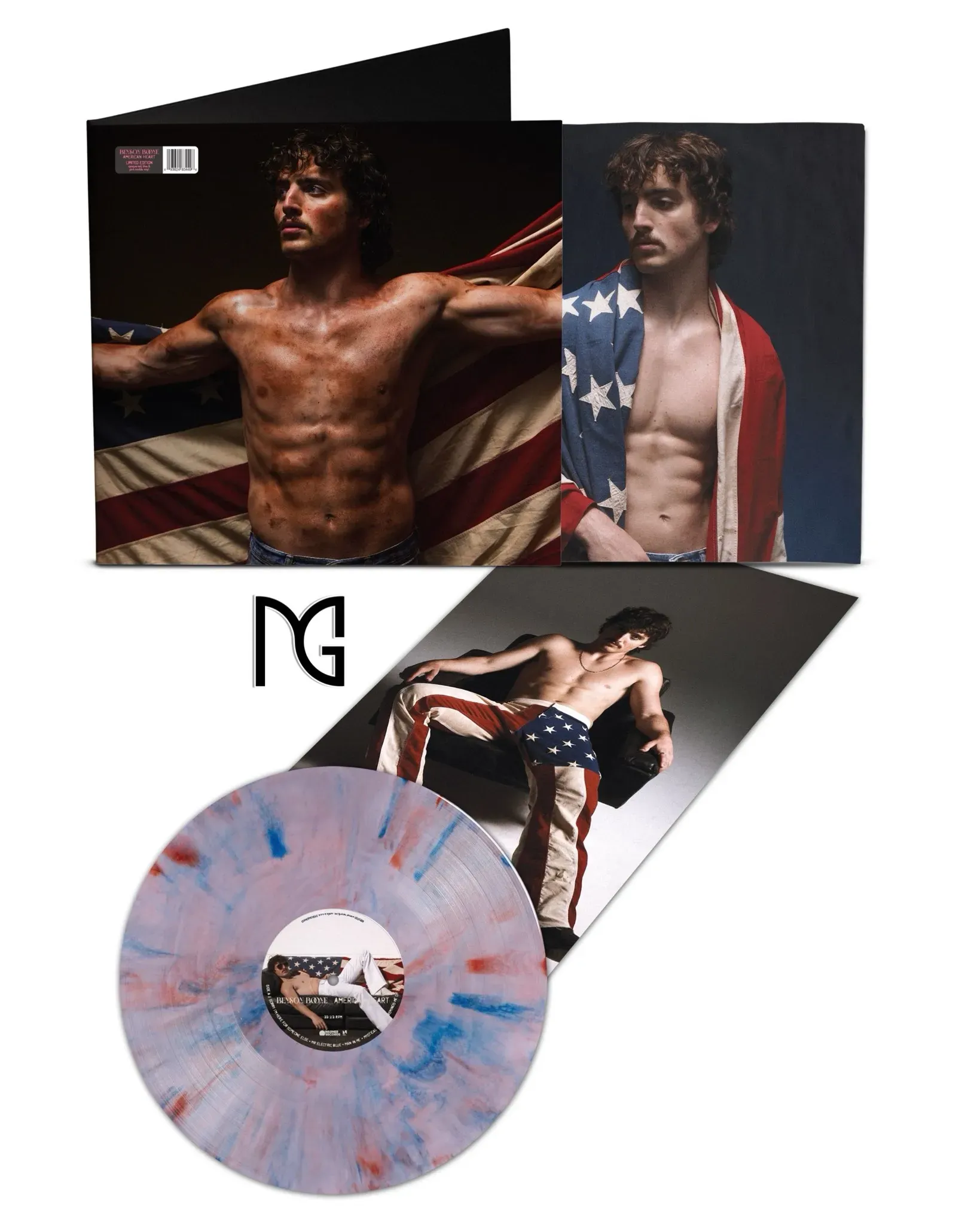 Pre-Orden American Heart Vinyl Red and blue marble on opaque baby pink Edición Limitada Benson Boone