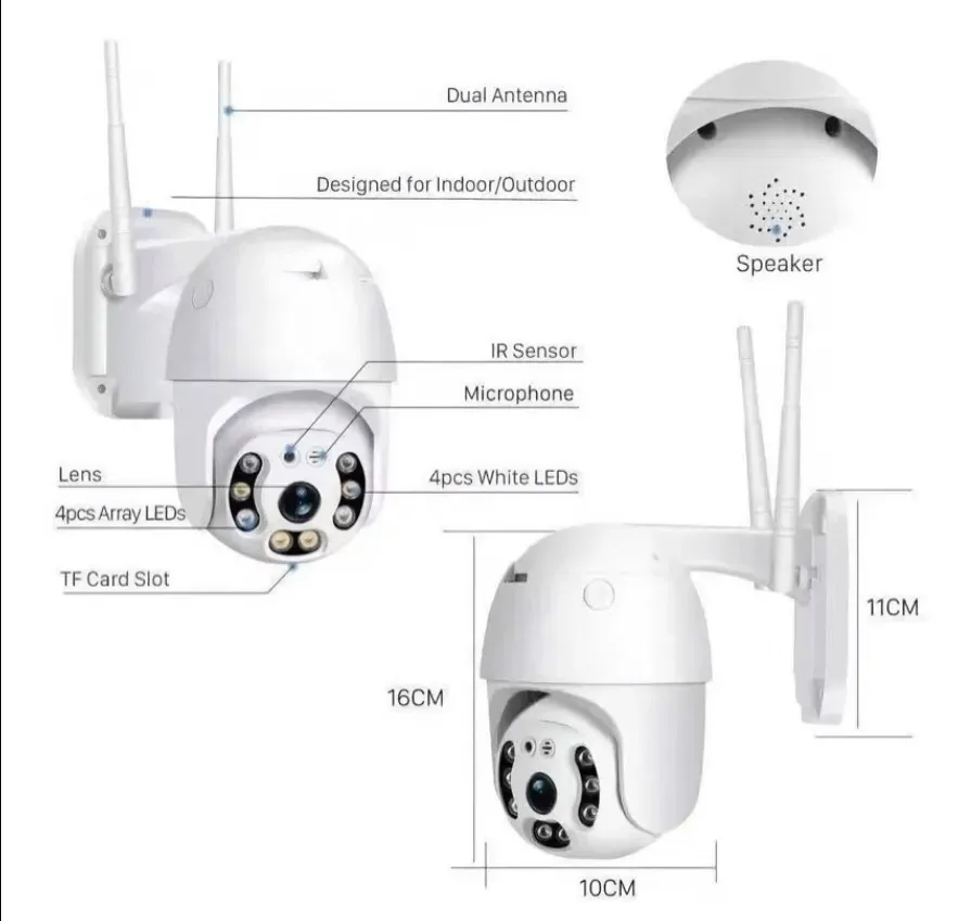 CÁMARA SMART WIFI DOMO EXTERIOR FULL HD 1920x1080P “Real” / CON MOVIMIENTO 320º HORIZONTAL Y 90º VERTICAL / SEGUIMIENTO INTELIGENTE / P2P CON LUZ BLANCA.