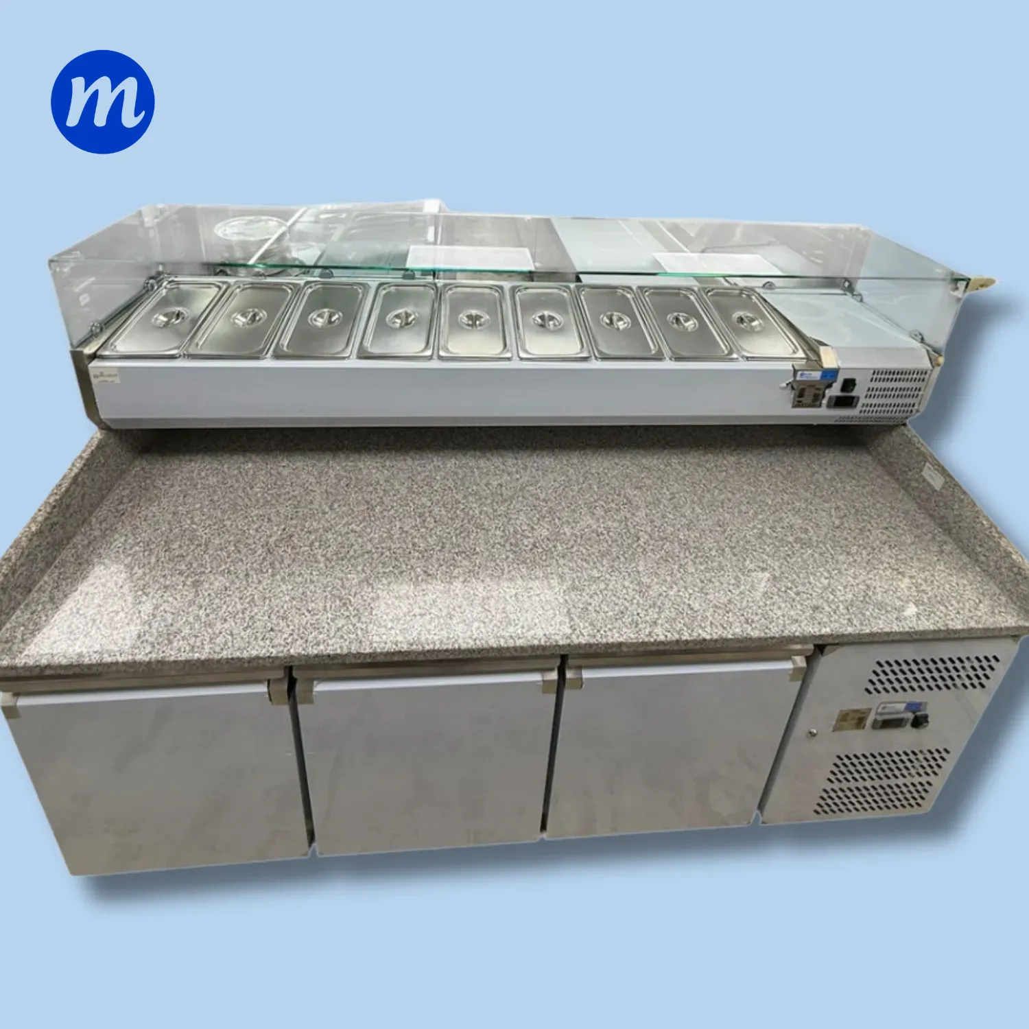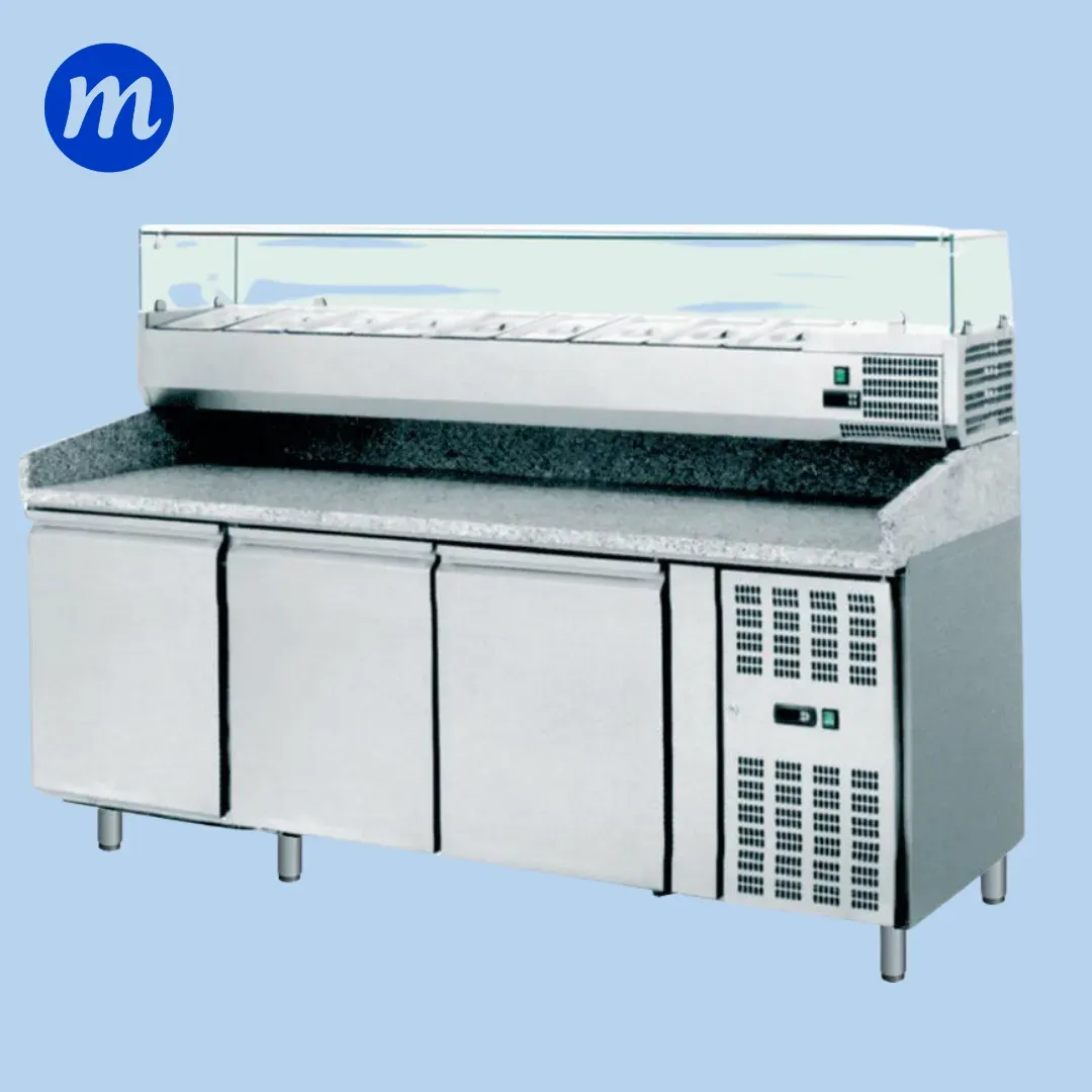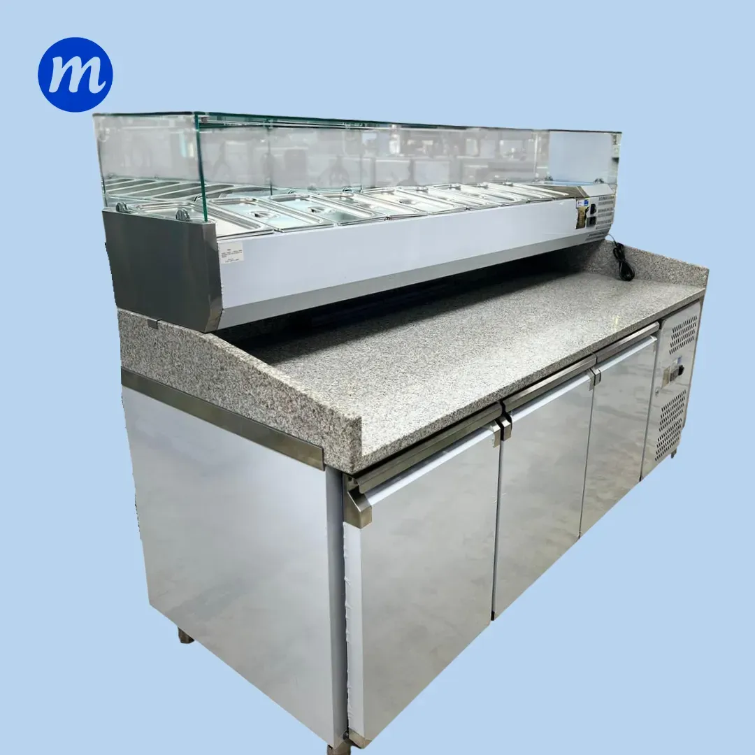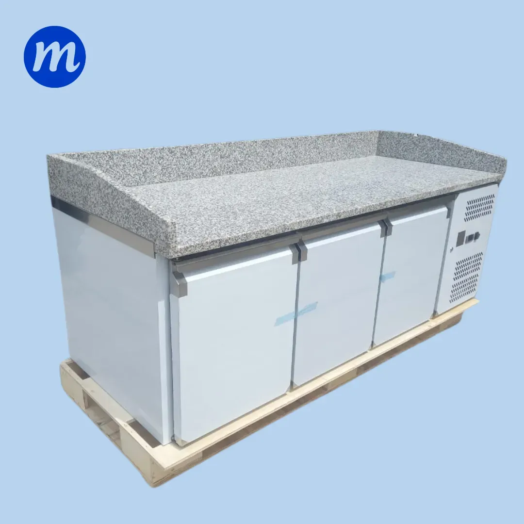 MESA PIZZERA 3 PUERTAS ACERO INOXIDABLE CON TOPE DE GRANITO 110V SENZANI