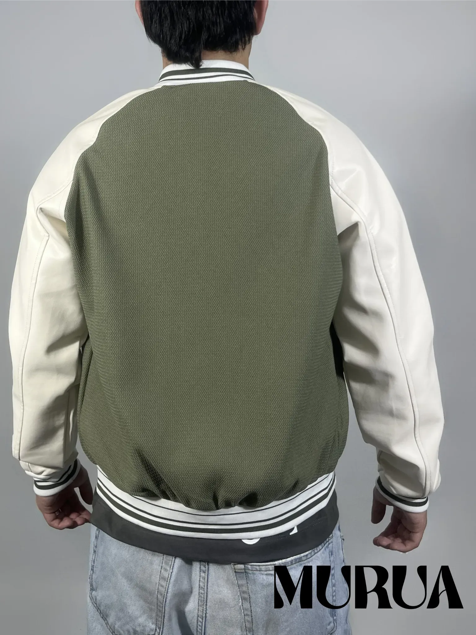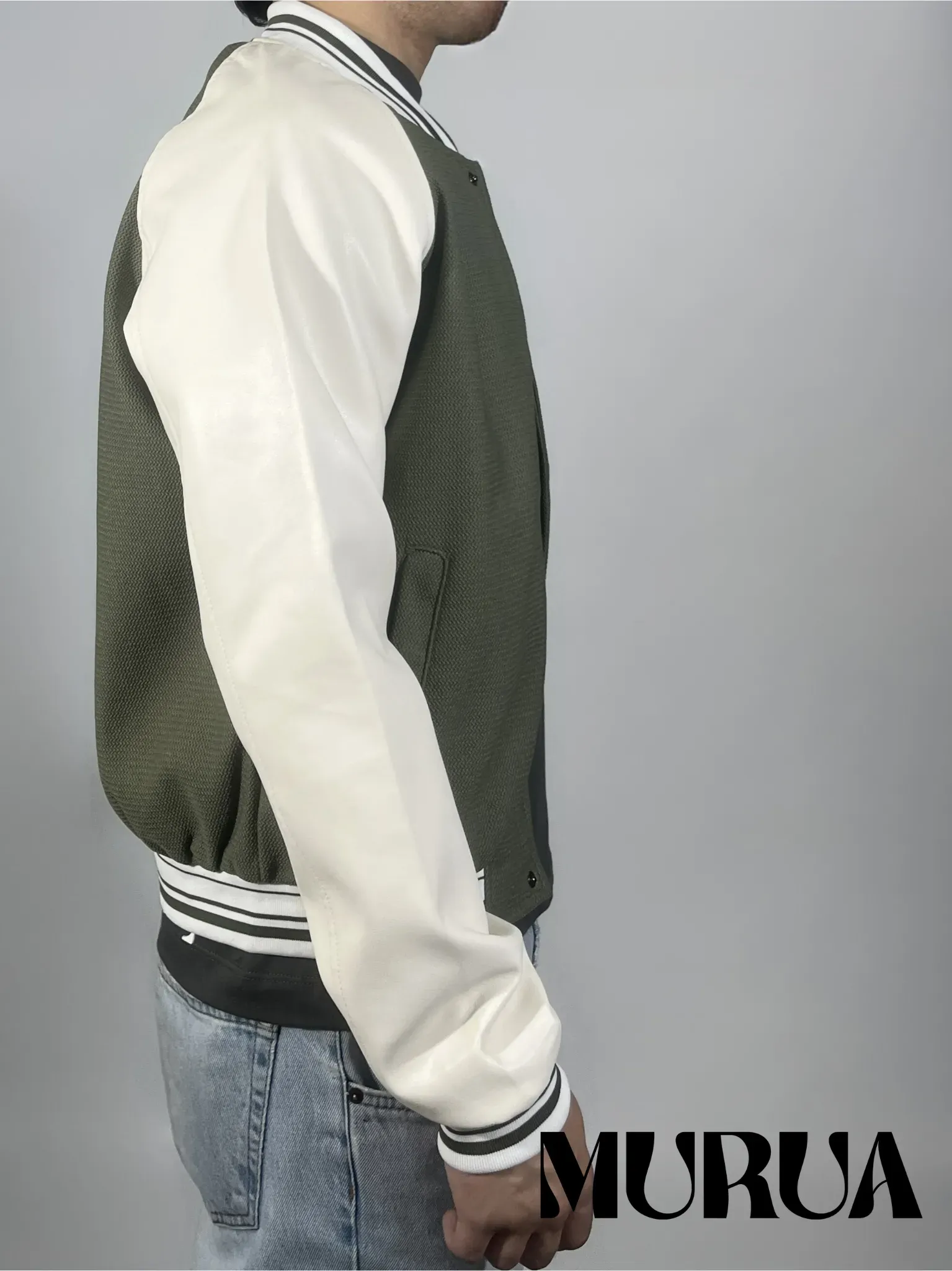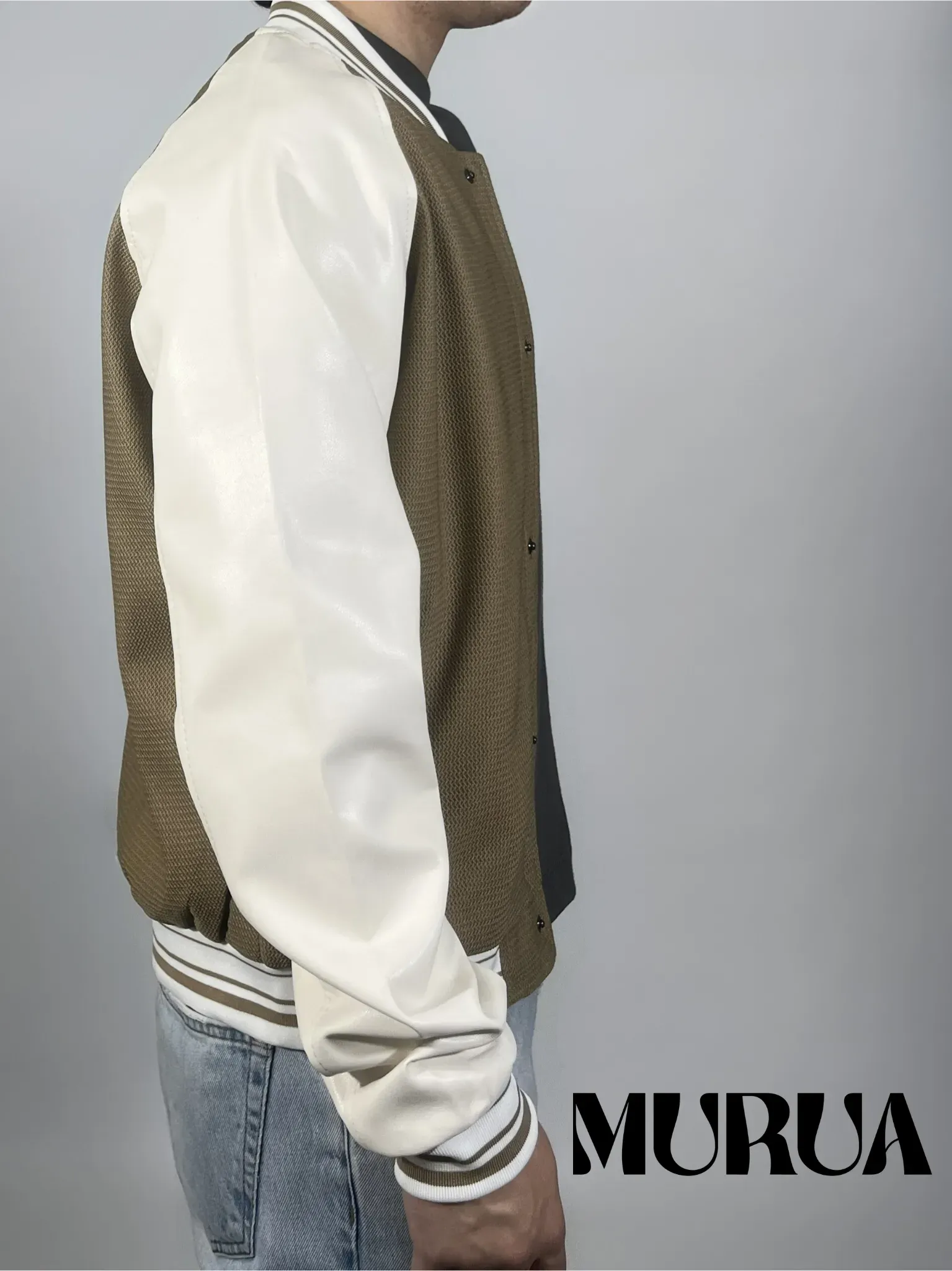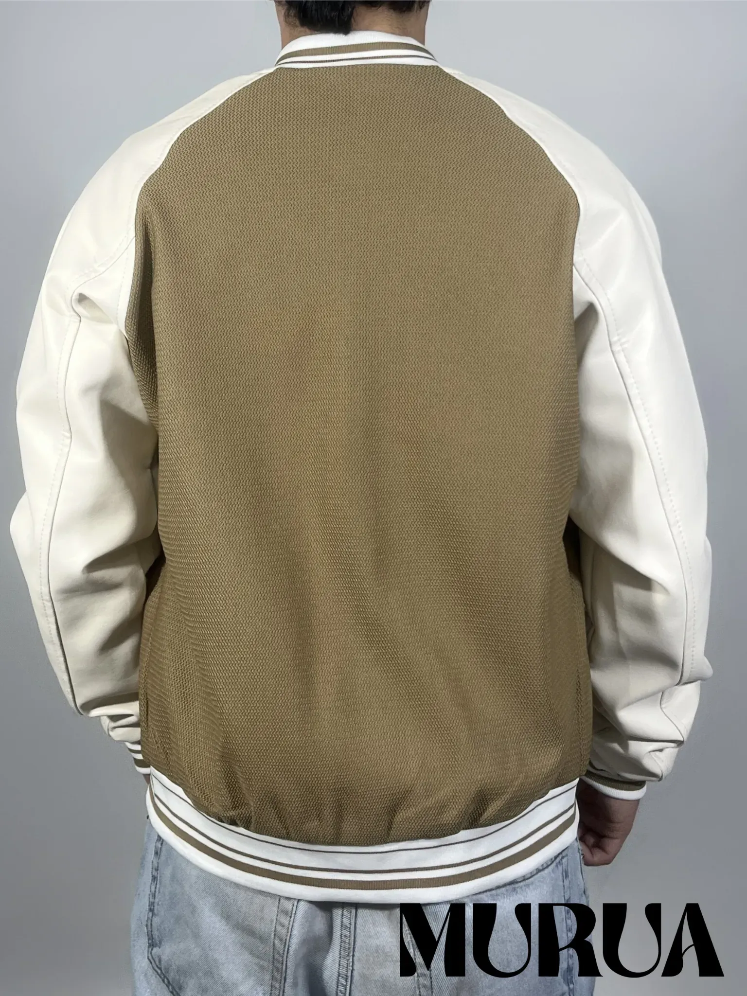 Chaqueta tipo beisbolera confeccionada en tejido acanalado para mayor comodidad y ajuste, combinada con cuerina que aportan un look moderno y llamativo. Su diseño ligero y versátil la convierte en la prenda perfecta para outfits urbanos, casuales o deportivos.