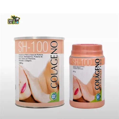 SH-100 (Colágeno), alimento a base de proteína, vitaminas, minerales y colágeno hidrolizado. Para una mejor salud de la piel.