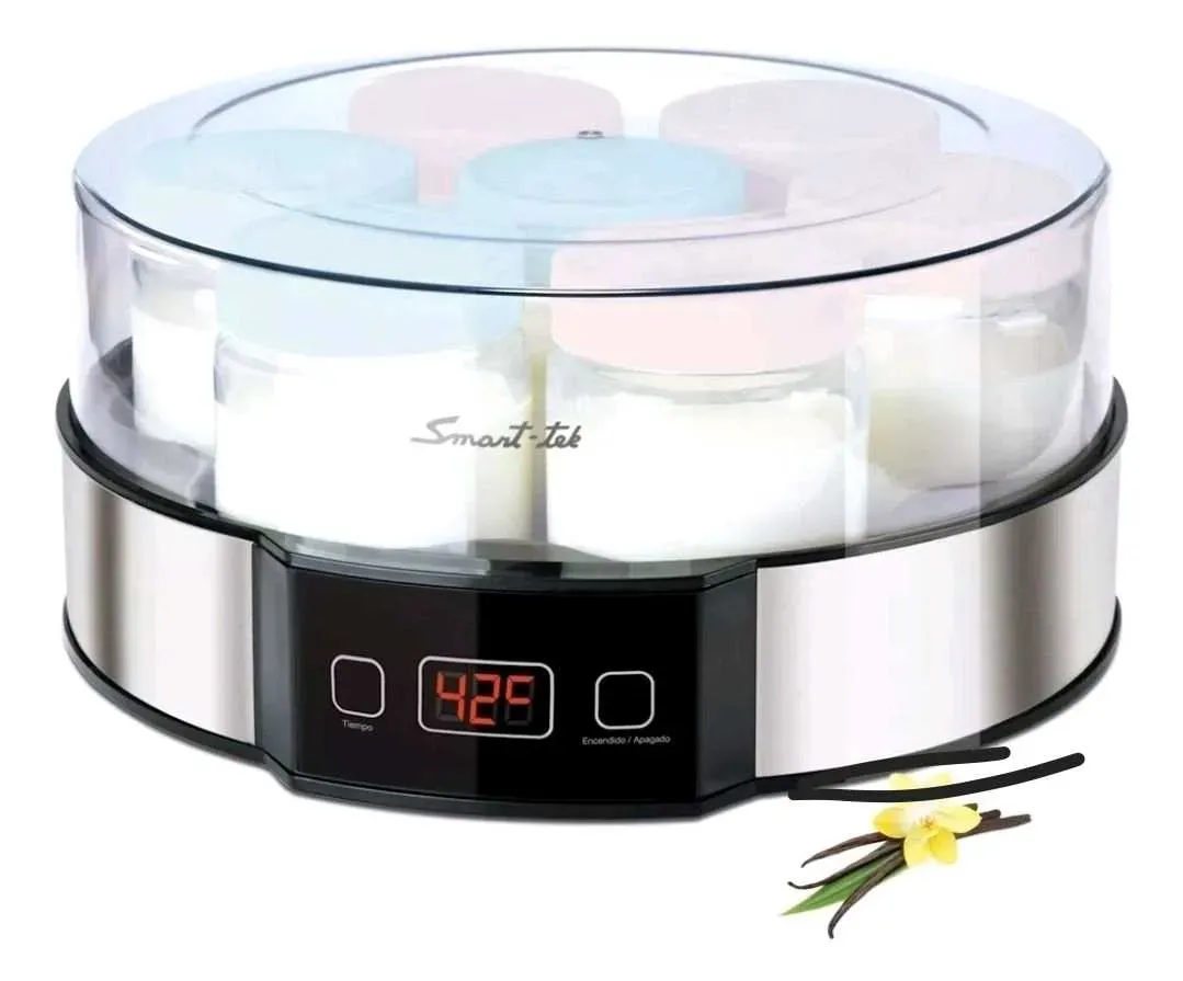 Esta yogurtera viene con 7 tarros de cristal y tapas, cada uno con capacidad para 180 ml de yogures de distintos sabores. Funciona a una temperatura de entre 42ºC y 50ºC para obtener unos resultados de fermentación ideales. El interruptor de encendido/apagado y el indicador de potencia facilitan su ...