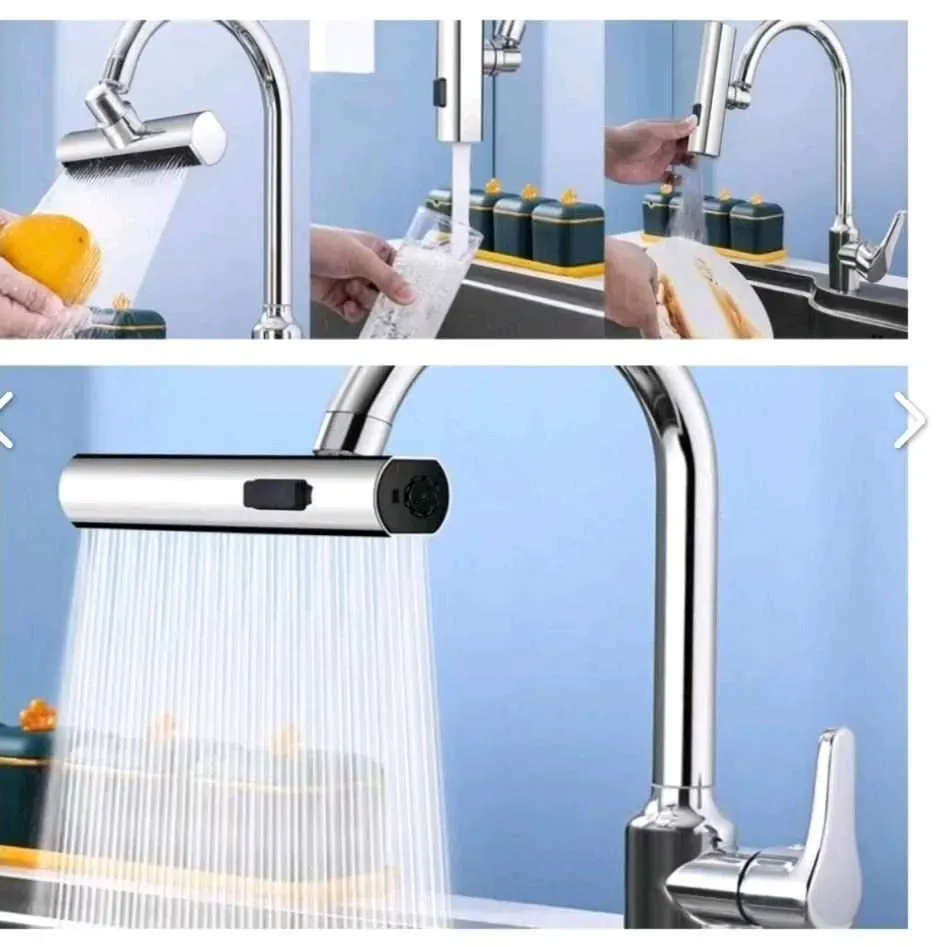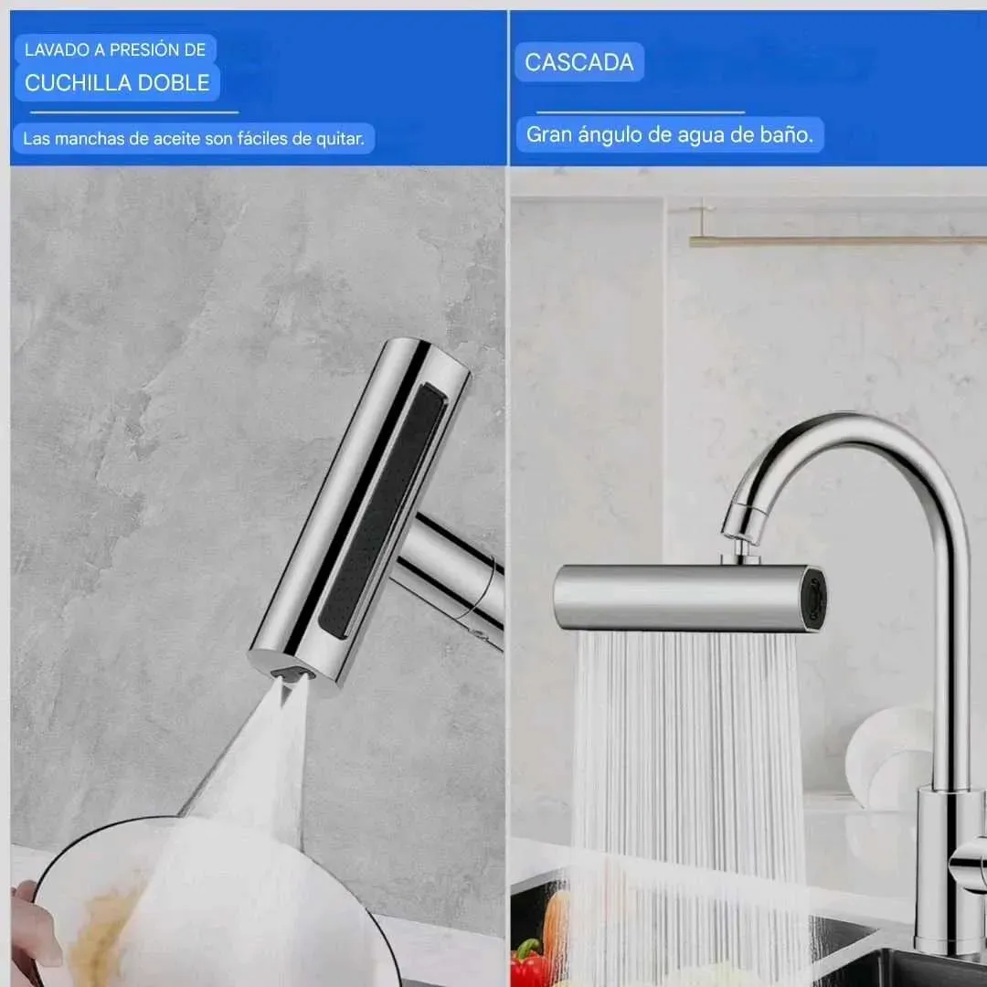 4 modos de salida de agua, gire la pieza de la boquilla 90 grados para cambiar entre los 4 métodos de salida de agua.