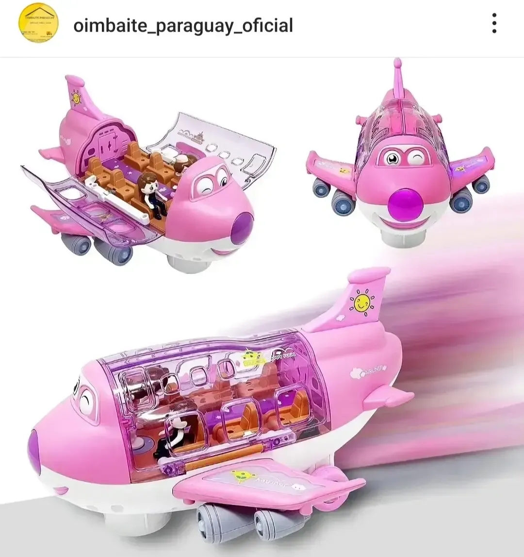 Juguete avión con 2 pasajeros y 1 azafata, con luces y música.