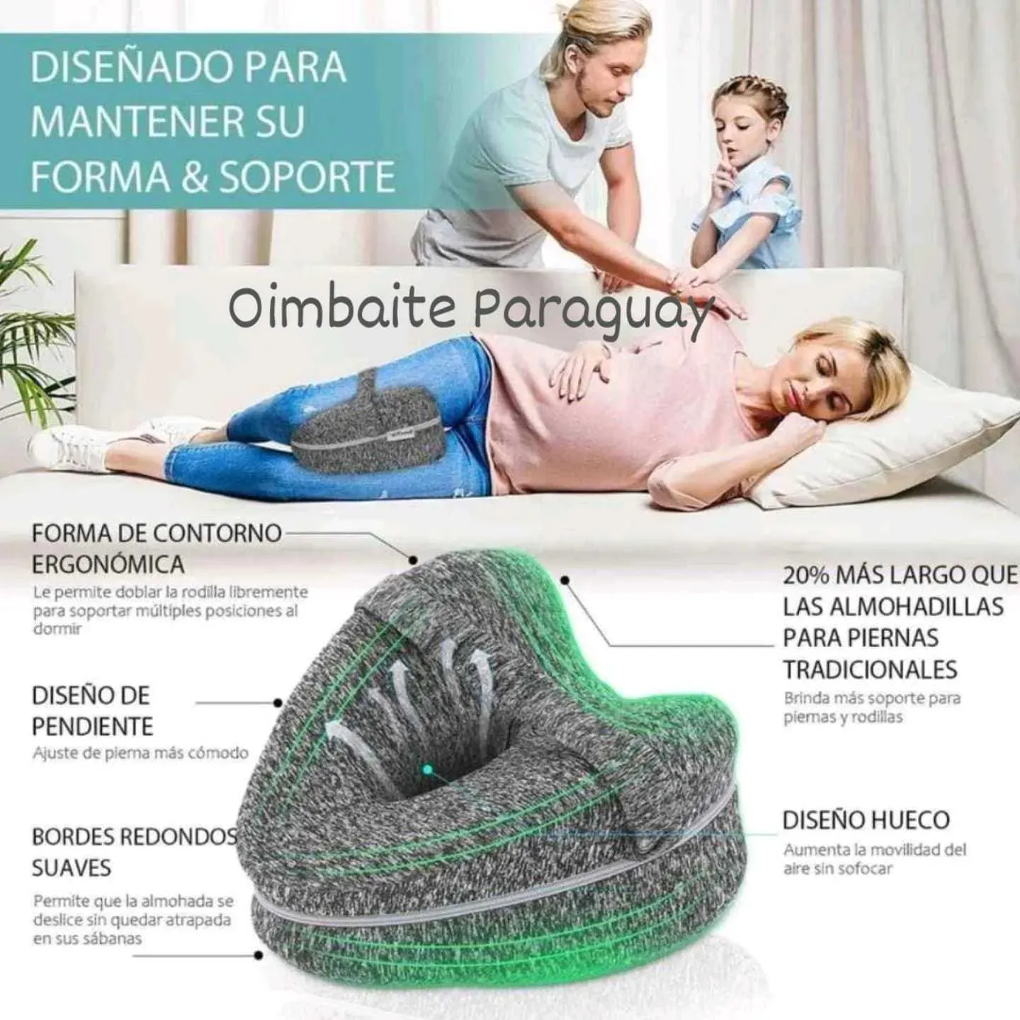 Cojín ergonómico para una buena postura durante el sueño.