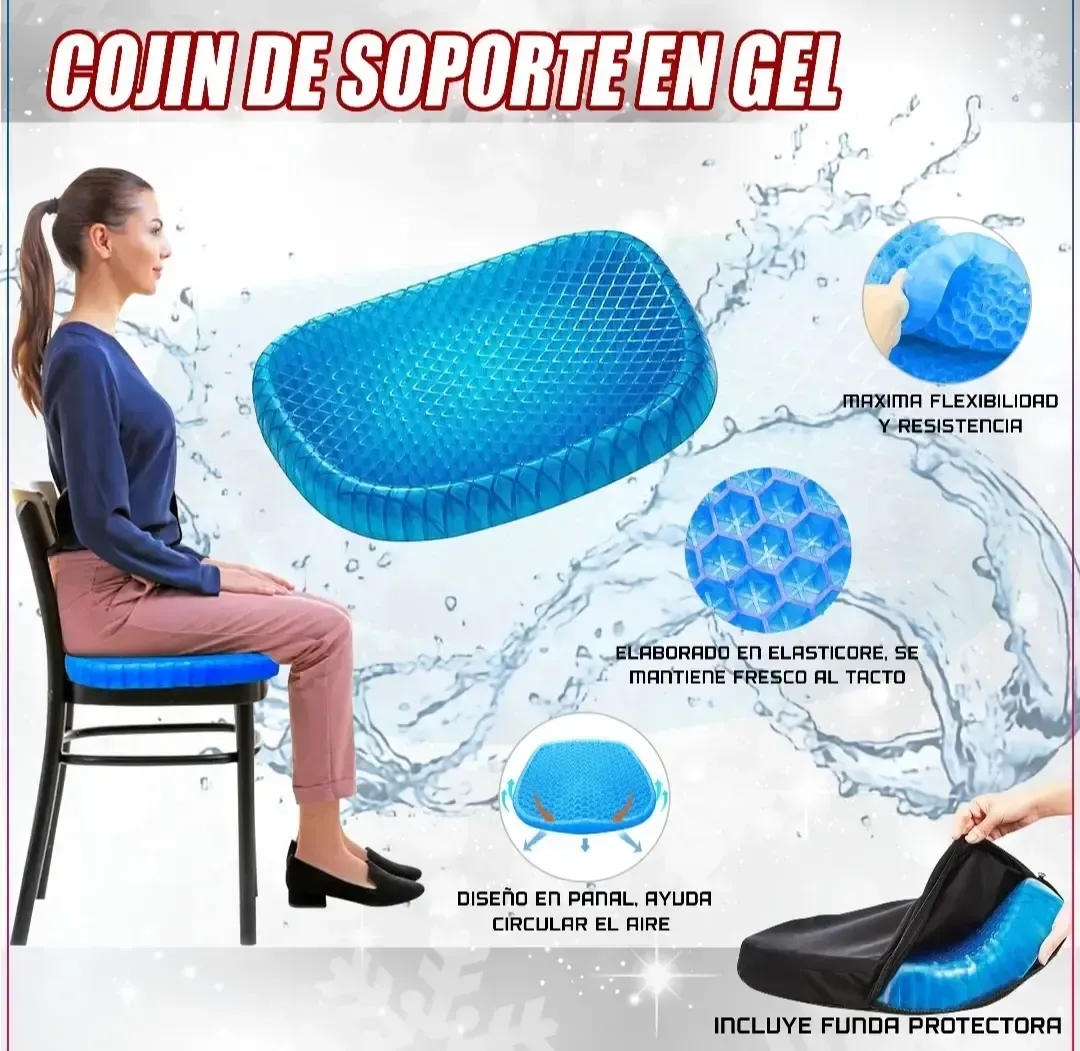 La estructura del cojin en gel permite reducir la presión sobre los músculos y las articulaciones lo que permite permanecer sentado durante más tiempo mientras mantiene la concentración.