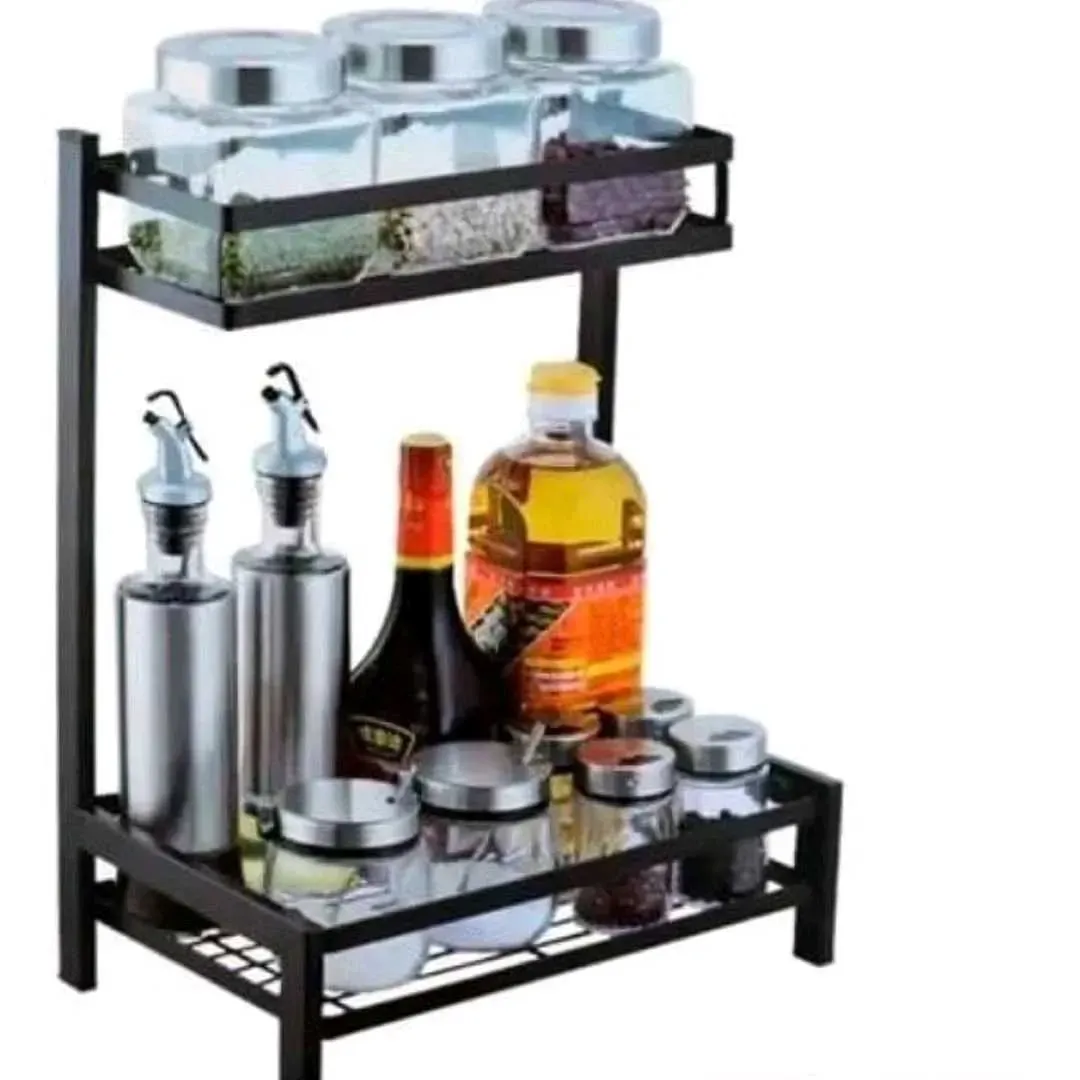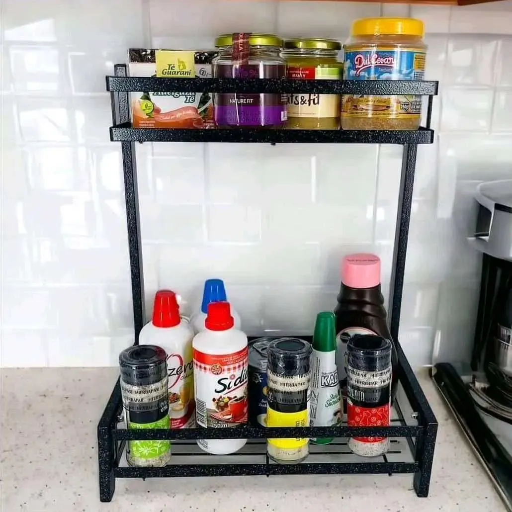 Estante de metal de 2 niveles para organizar condimentos, frascos y botellas.