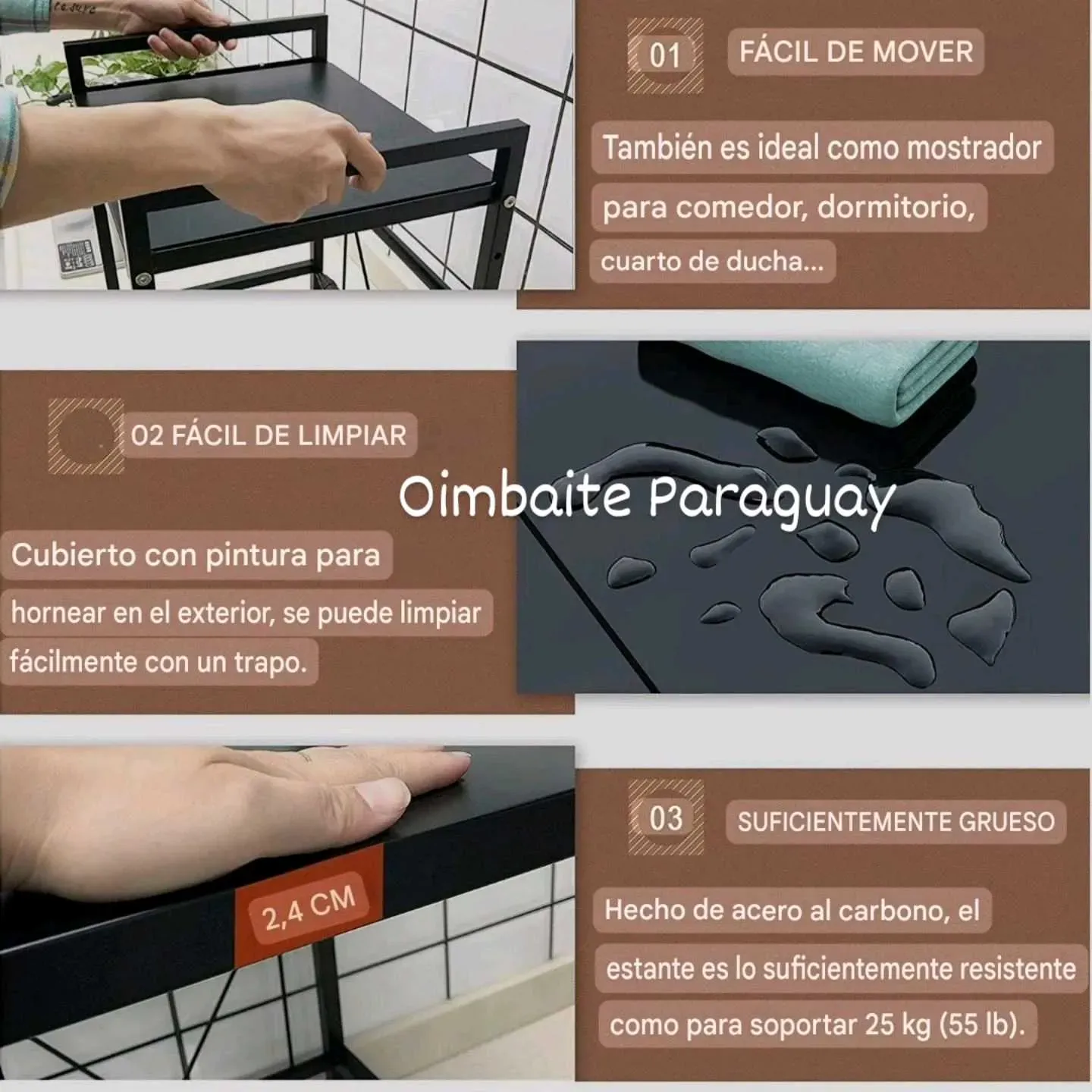 Estante soporte de metal multiuso súper resistente para la cocina, habitación, quincho, lavandería y otros.