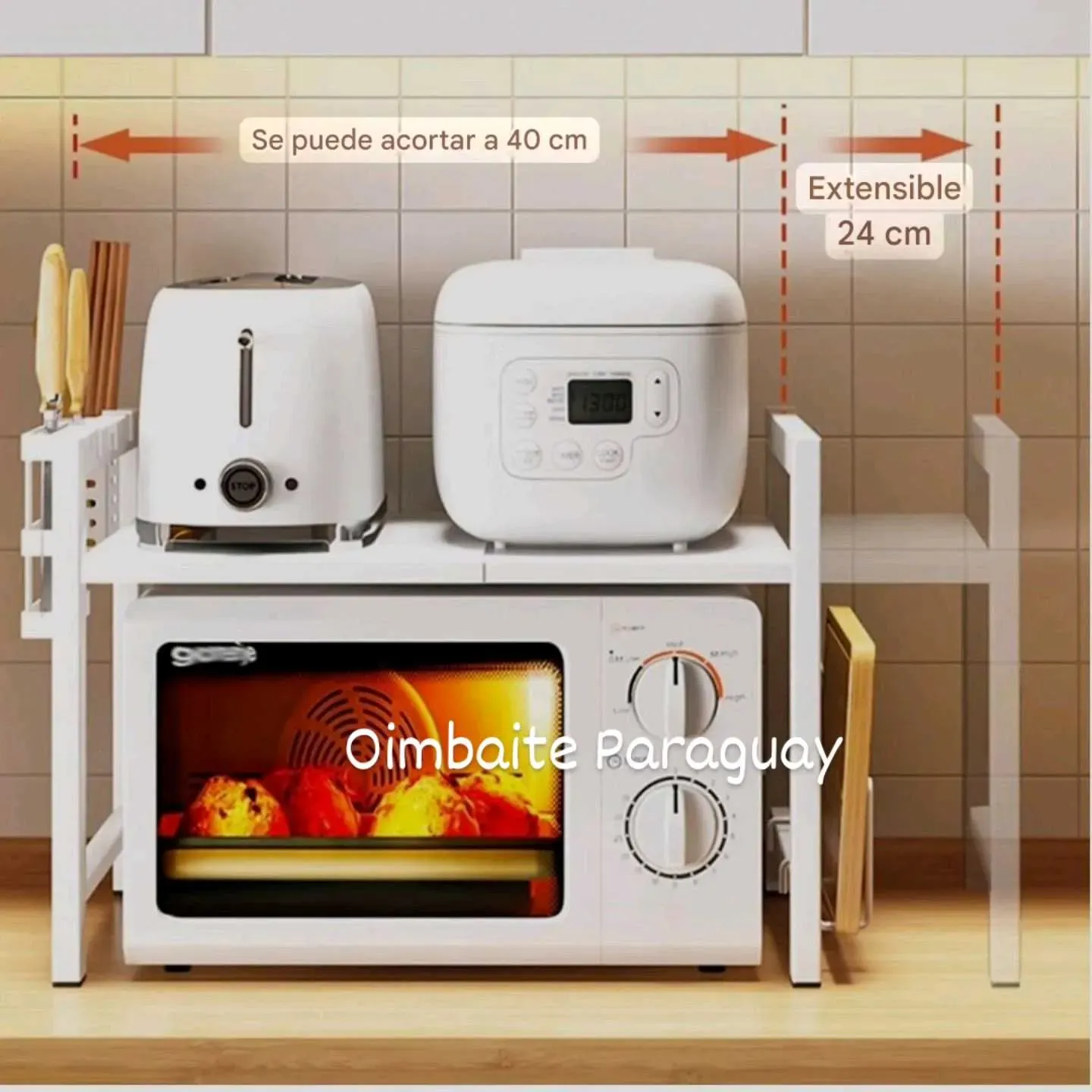 Incluye ganchos, porta cubiertos y cuchillos grandes y porta tabla de picar.