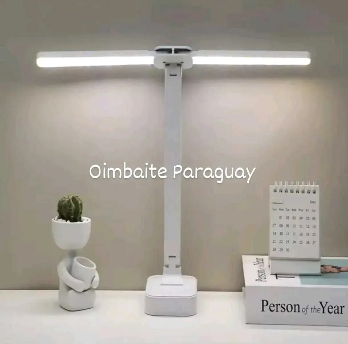 Lámpara led táctil para escritorio, doble cabezal, plegable.