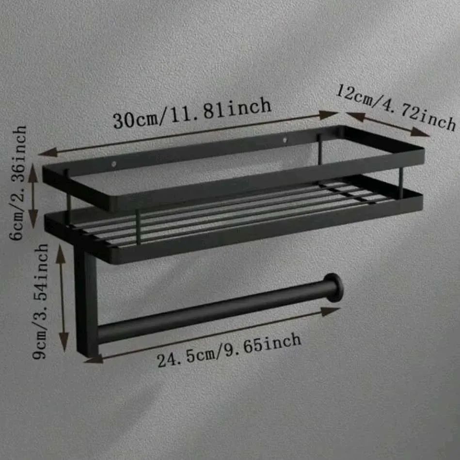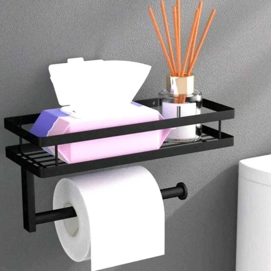 Organizador de metal con soporte de papel para sanitario o cocina.