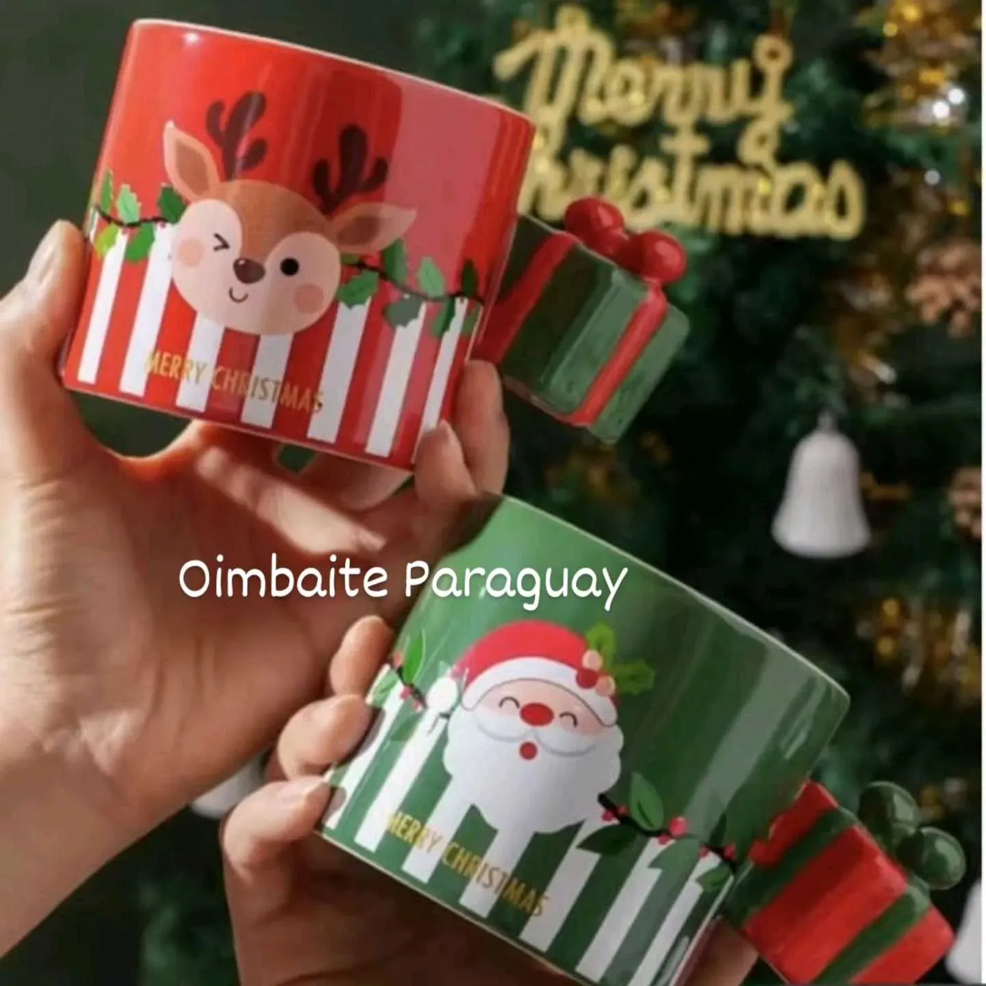 Taza de porcelana, diseño navideño, agarre original en forma de obsequio.