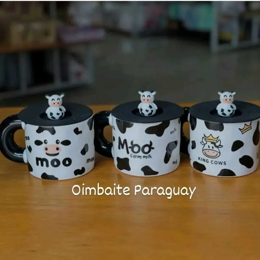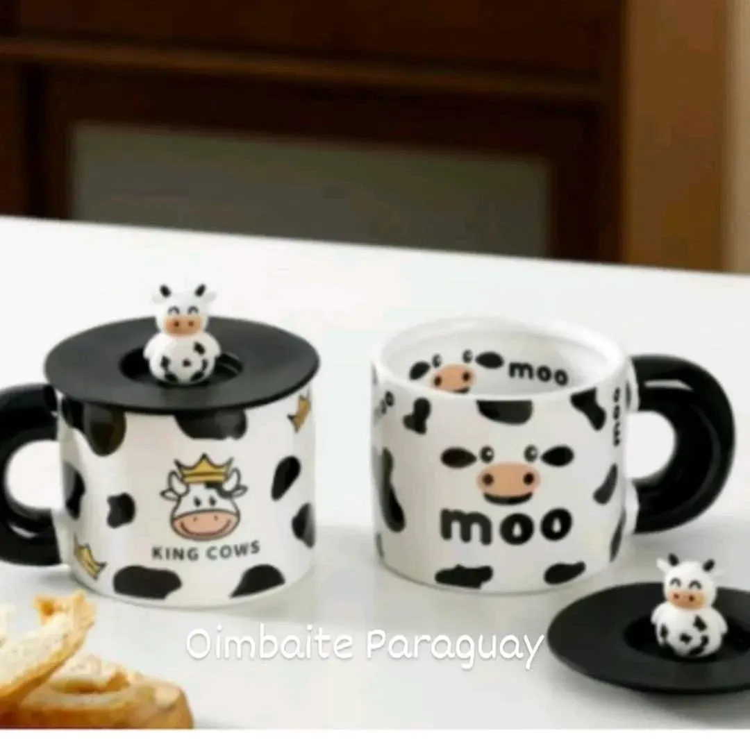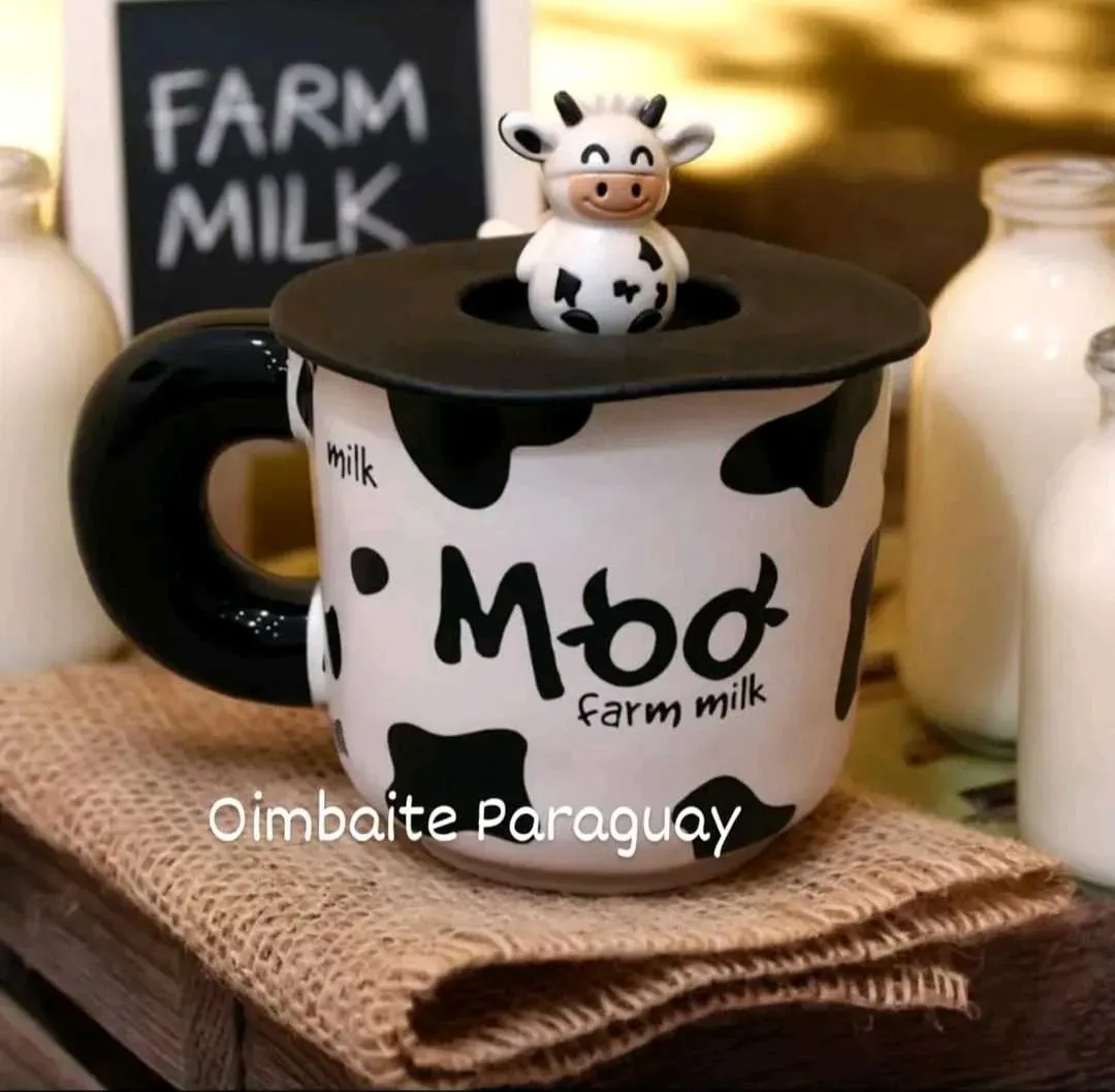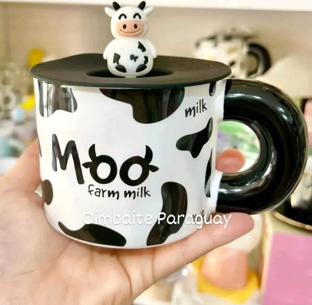 Taza de porcelana diseño vaquita 🐄🐮 con tapa de silicona
