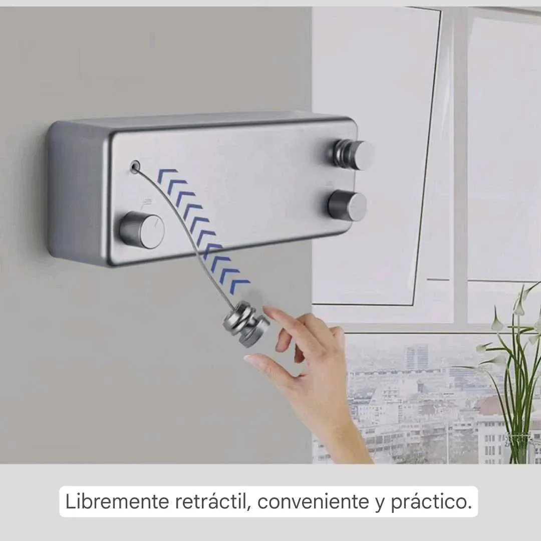 Tendedero retraíble para espacios pequeños, con cuerda de acero reforzado, cada cuerda mide hasta 4.20cm, total 8 metros 40cm. Se adapta al espacio.