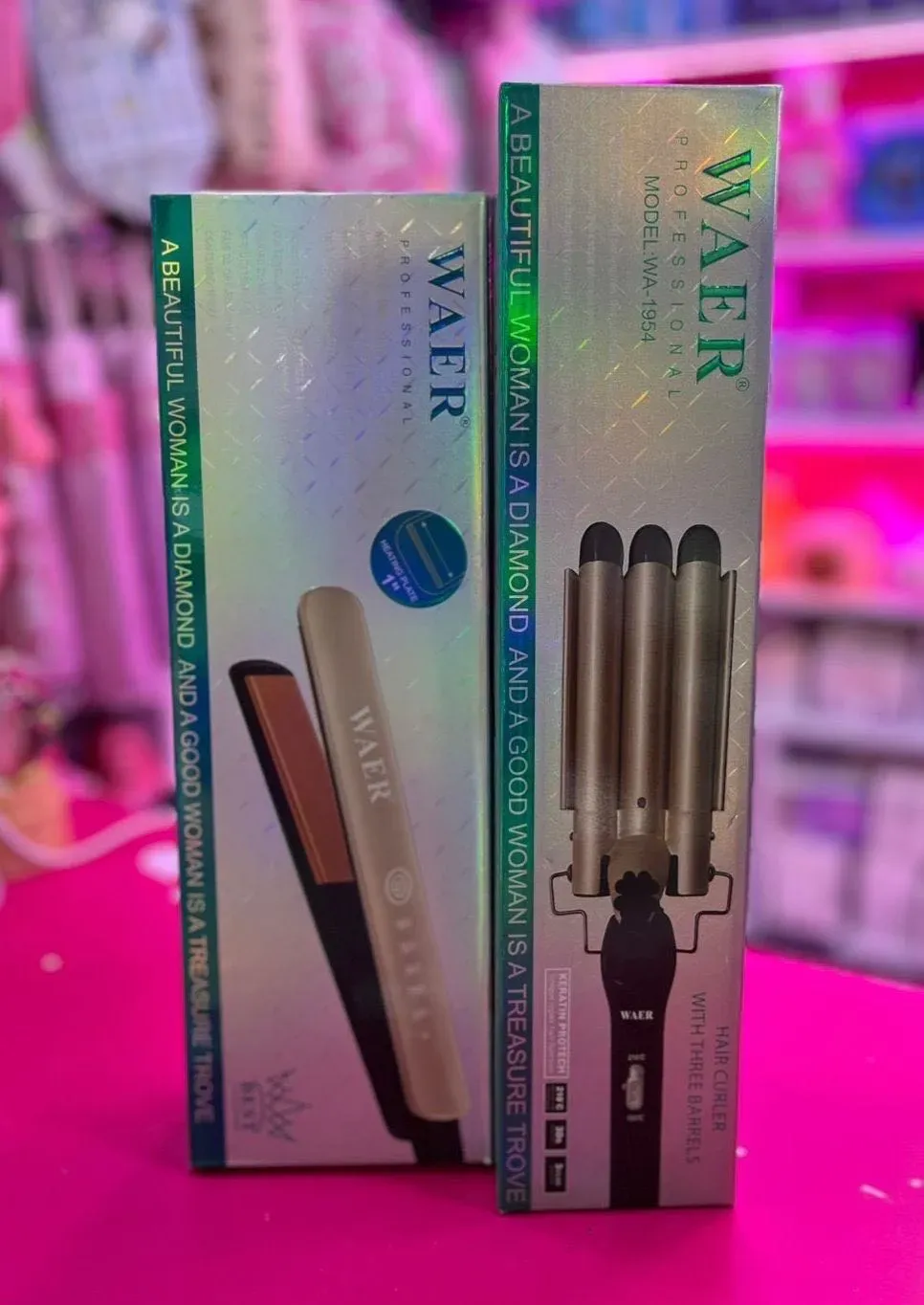 Combo 🔥 Plancha WAER✔️ Placas de cerámica de alta calidad✔️ Calentamiento rápido y uniforme✔️ Cabello liso, brillante y sin frizz🔥 Rizador WAER sirena✔️ Ideal para ondas naturales y definidas 🌊✔️ Protección de queratina para evitar daño✔️ Fácil de usar